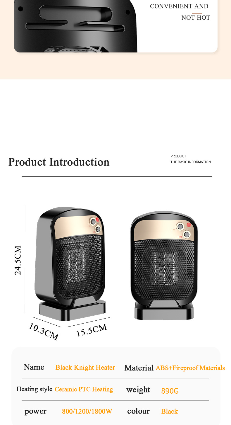 Heating method: PTC heater