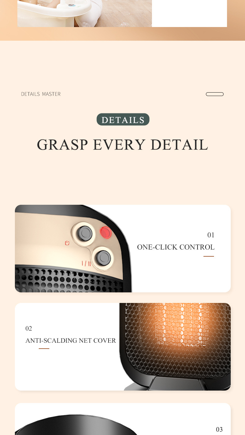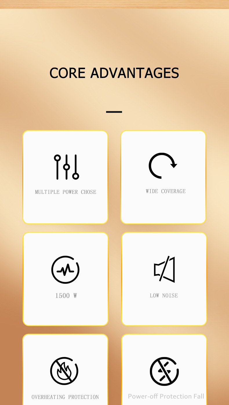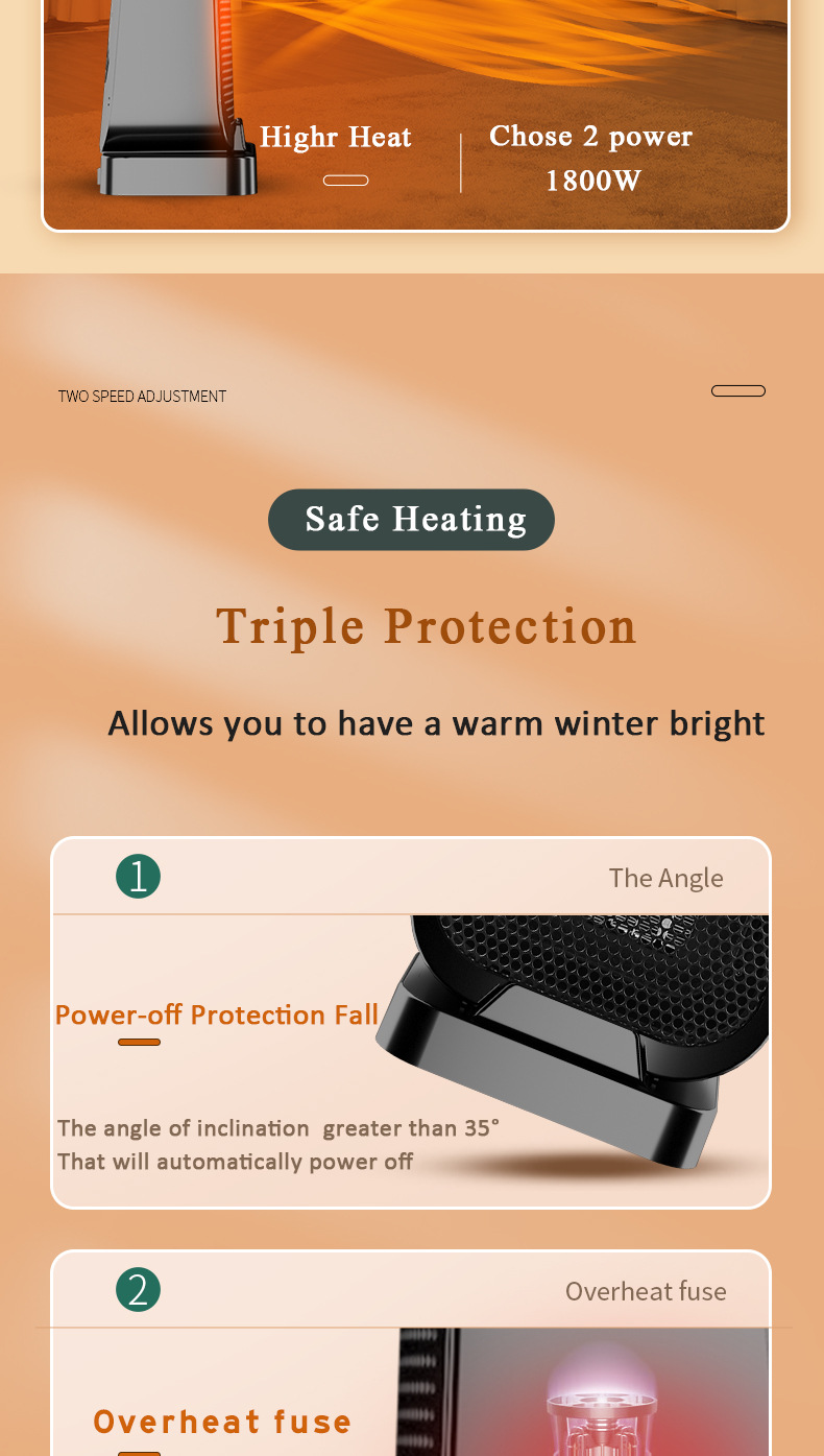 Safety, protection: overheating power failure, flame retardant material, dumping power failure, anti-scalding grille