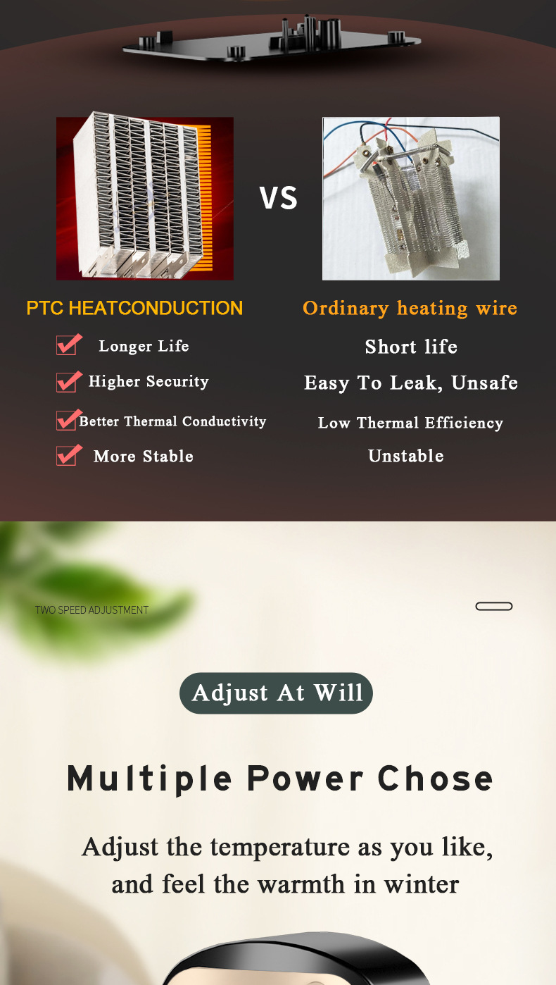 Heating method: ceramic PTC heating sheet