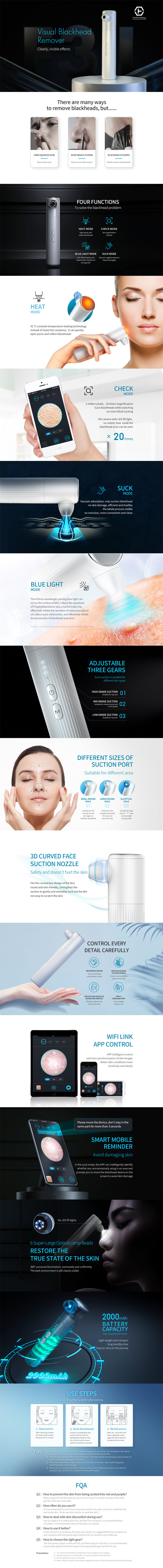 ♠High-definition camera, 20 times magnification, visual blackhead meter, blackheads have nowhere to hide