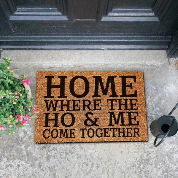 Home Where The Ho & Me Come Together Funny Coir Doormat - Heavy-Duty Coconut Fiber Front Porch Mat, Non-Slip Welcome Entrance Rug, 23.6x15.7 Inch 60x40cm Housewarming Gift With Edgy Humor Design