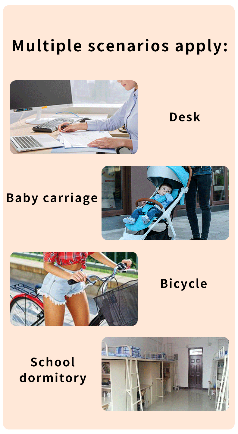 7.Features: Long battery life/with power bank function/variable bracket/removable front mesh washable/simple style
