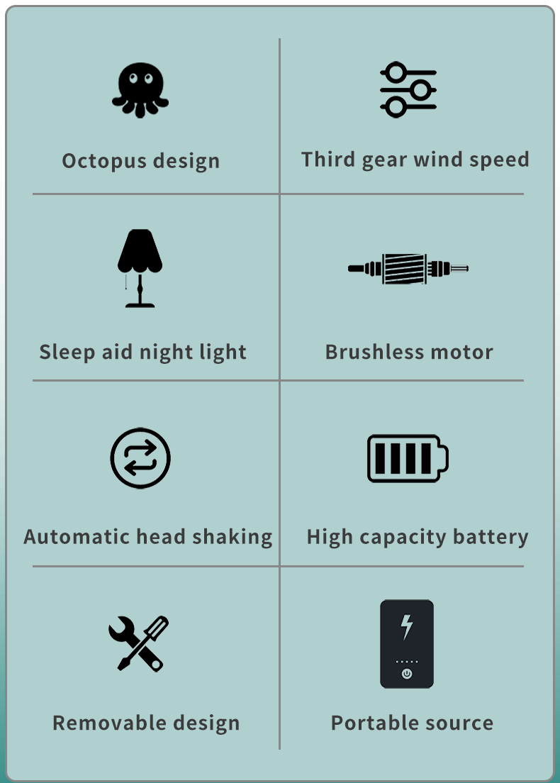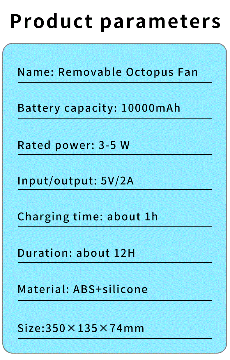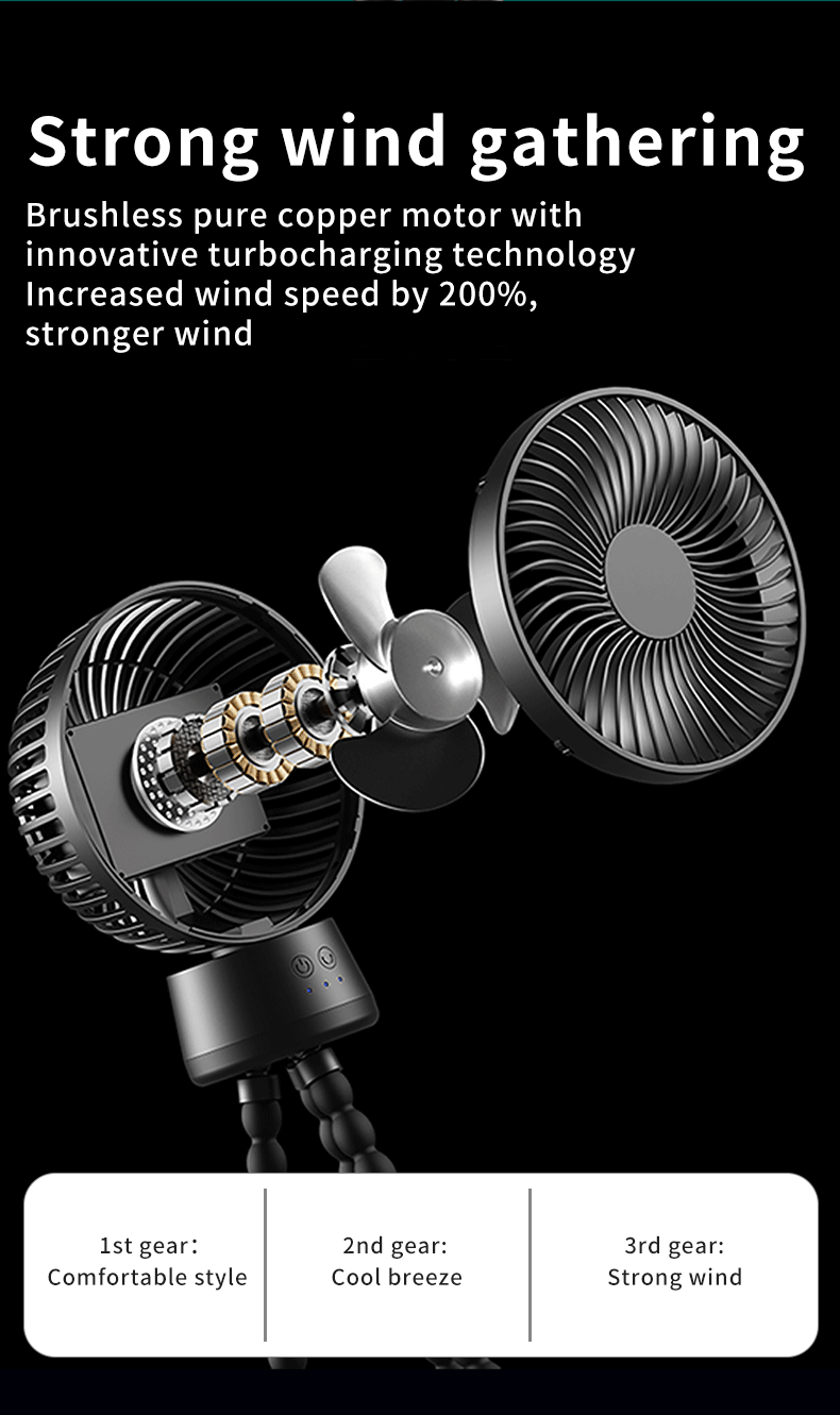 9.Features: 120° automatic head shaking, with LED light, removable bracket, with power bank function, removable front mesh, brushless motor noise low.