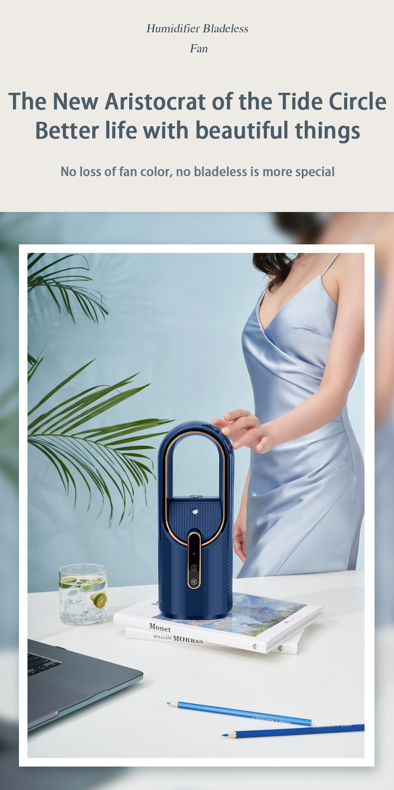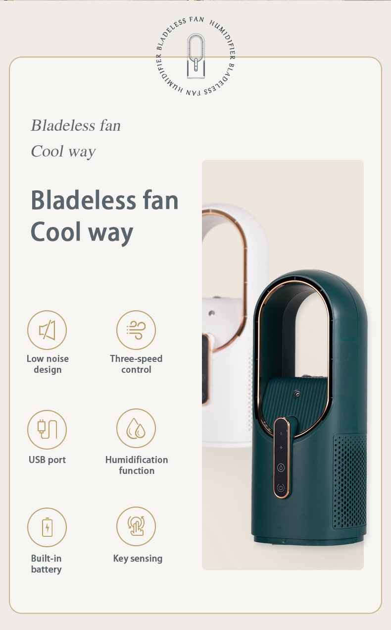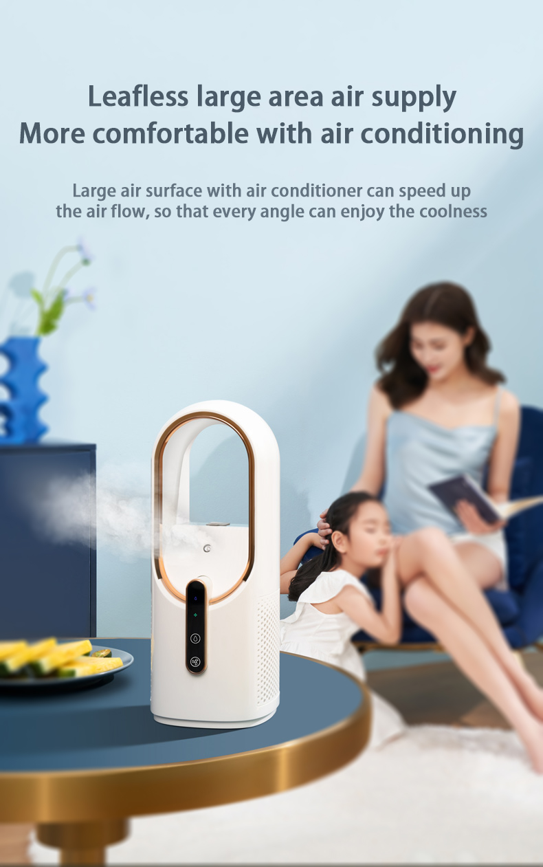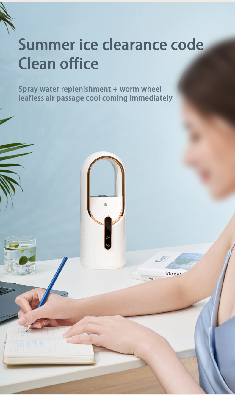 HOMEFISH F6 Small Fan Desktop Spray Desktop Mini Humidification Refrigeration Portable USB Charging Household Leafless Fan