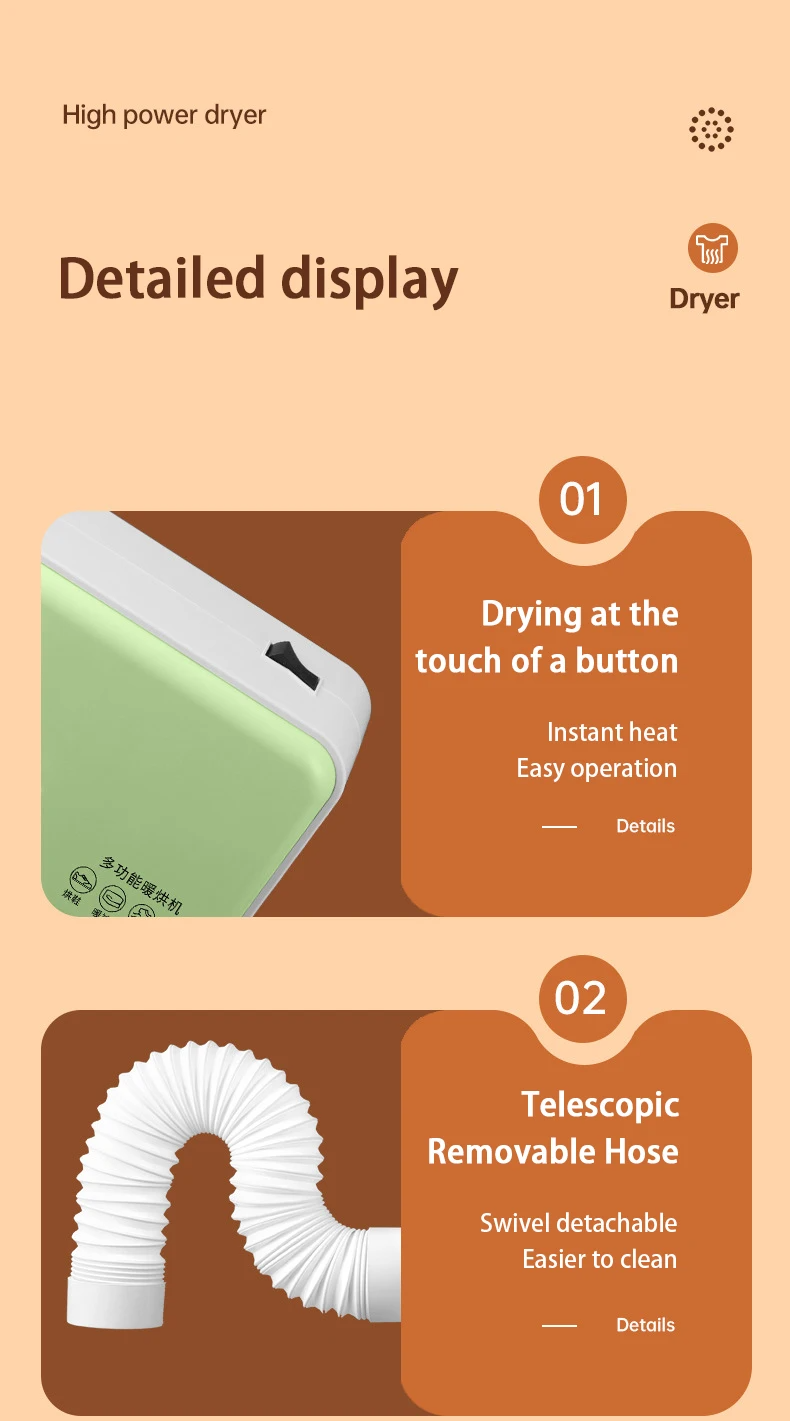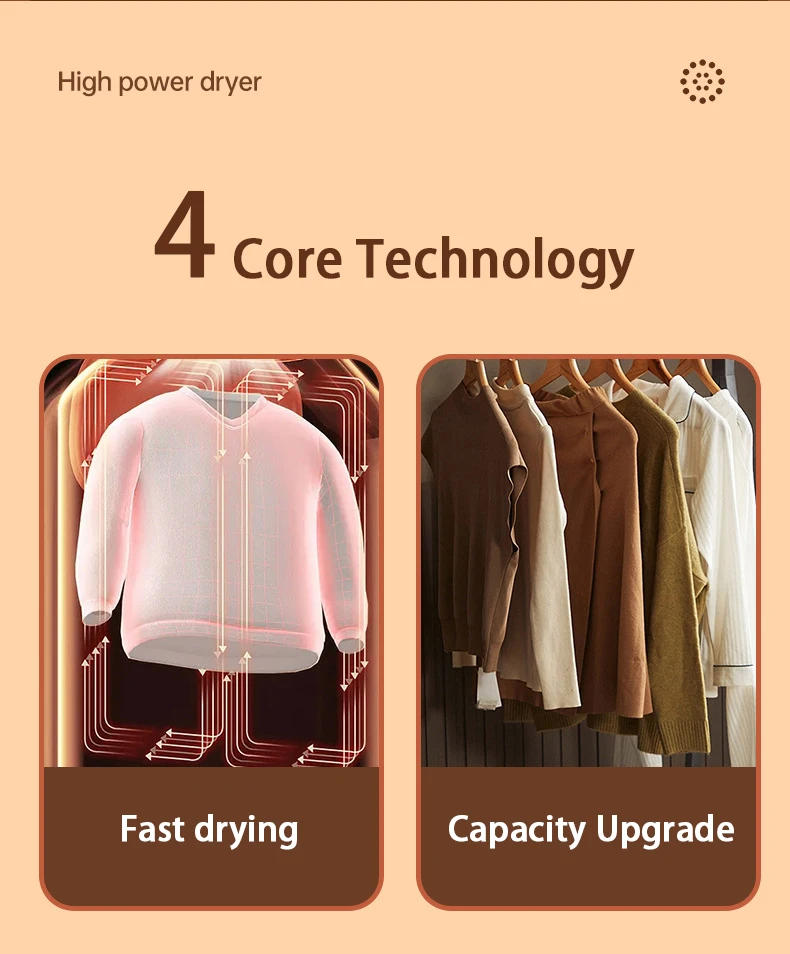 4. The dryer adopts intelligent constant temperature clothing protection and has a flame-retardant body safety, which can achieve rapid drying without damaging clothes.