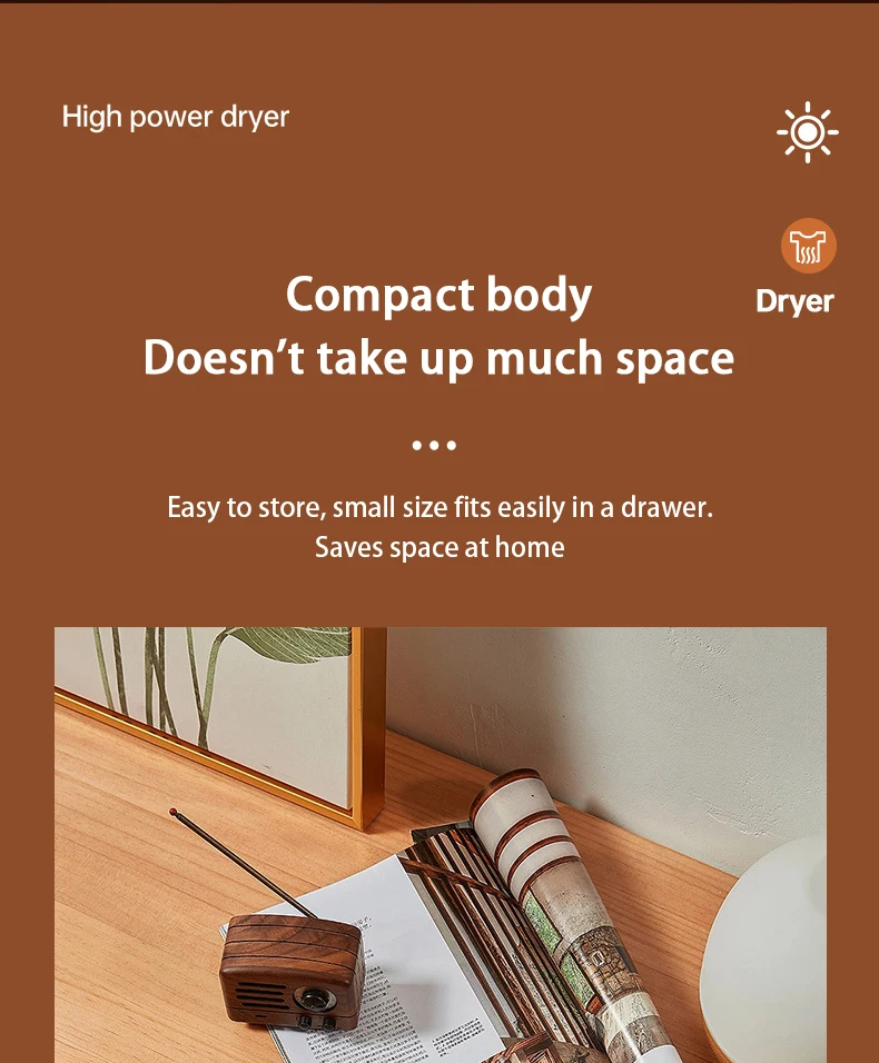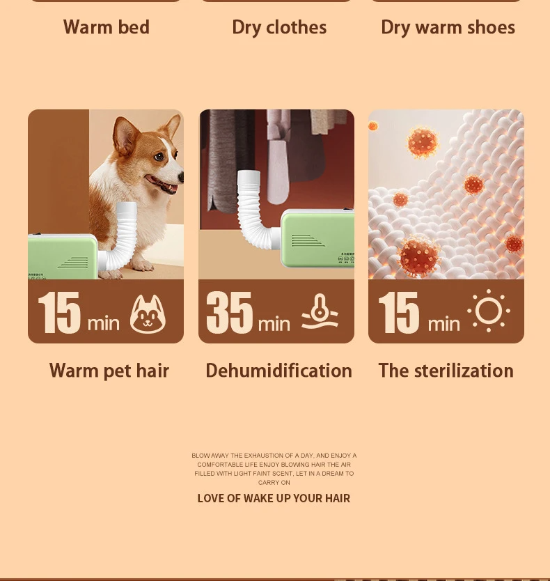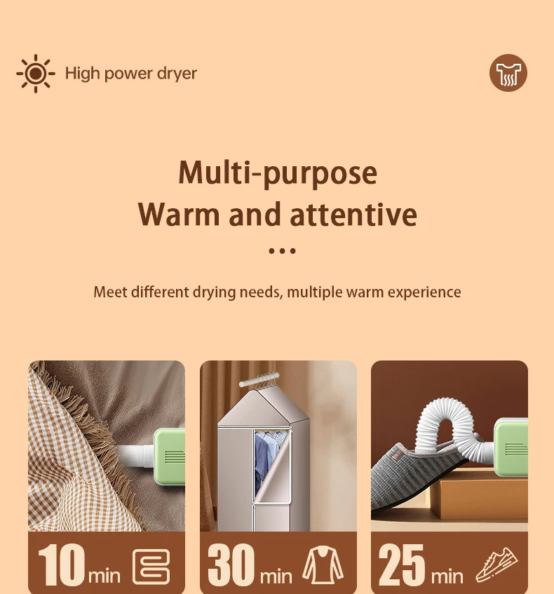 1. Can be used to dry clothes, shoes, gloves, pet hair, warm blankets, and more. In the cold winter, having a dryer is very convenient.