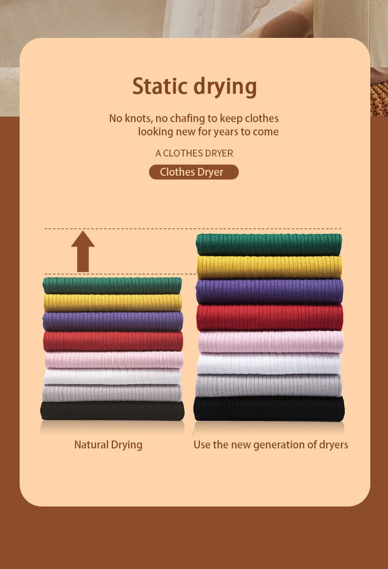 6. Clothes that are naturally dried will shrink and become very small, but using our dryer will not cause this problem. It will make the clothes fluffy and comfortable to wear without any odor.