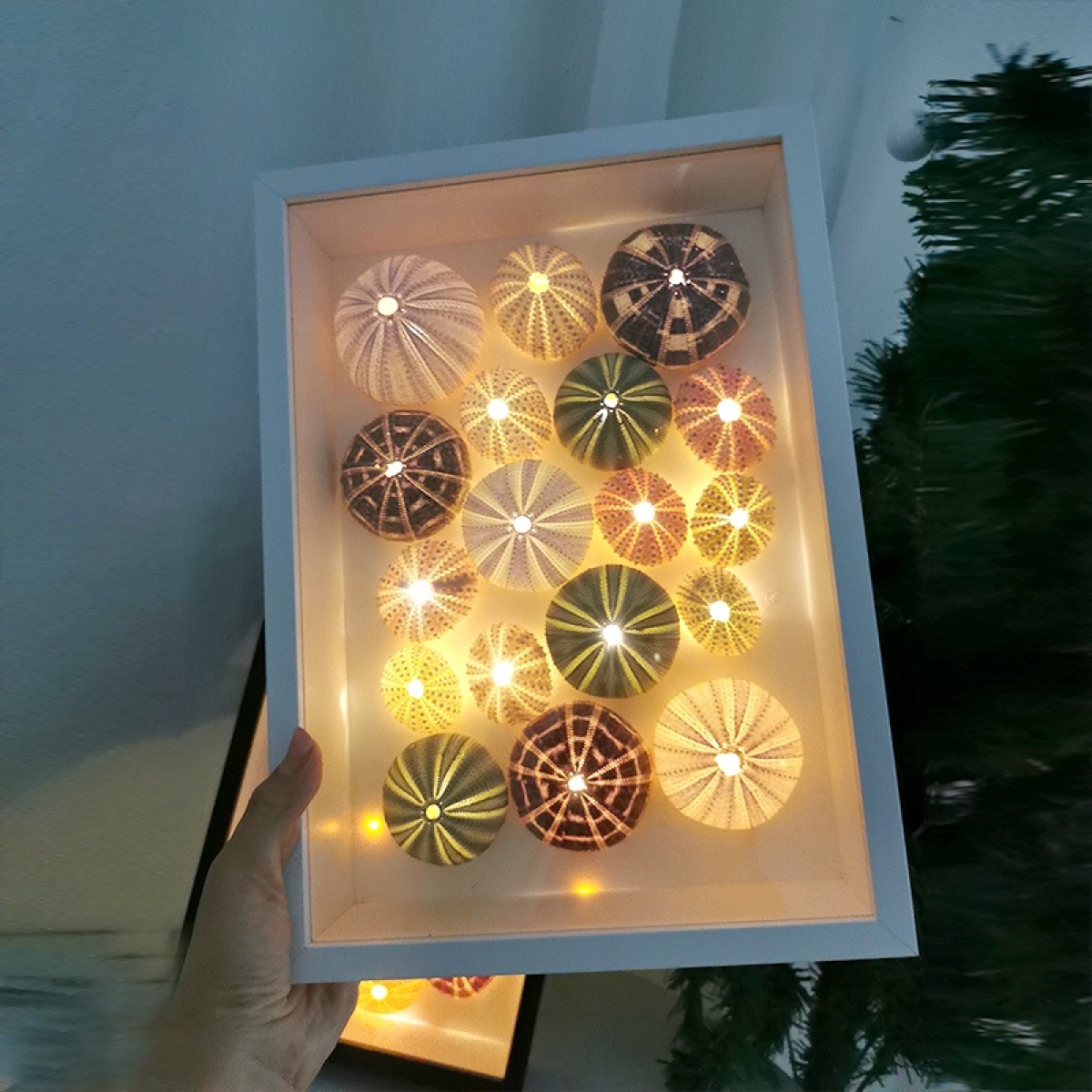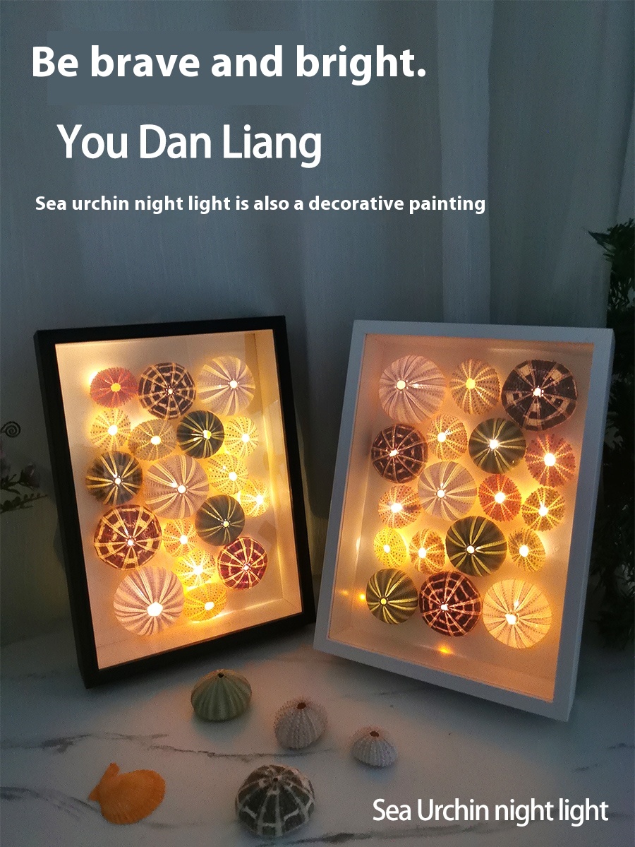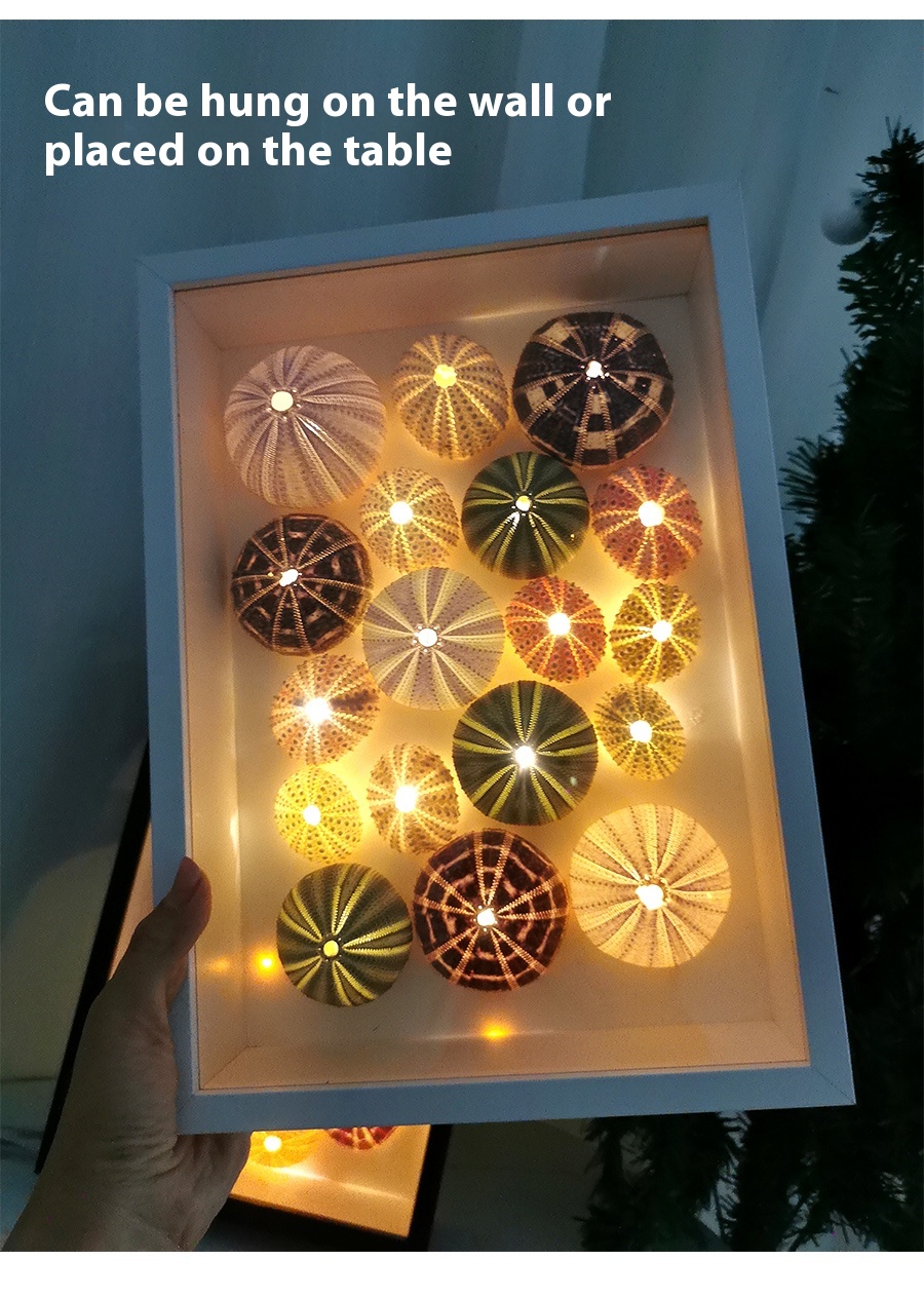 Category: Style1 Sea urchin photo frame night light black DIY style, Style2 Sea urchin photo frame night light white DIY style, Style3 Sea urchin photo frame night light black finished style, Style Sea urchin photo frame night light white finished style