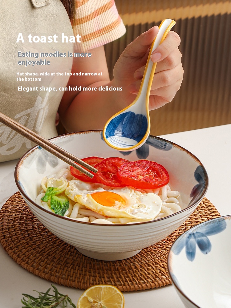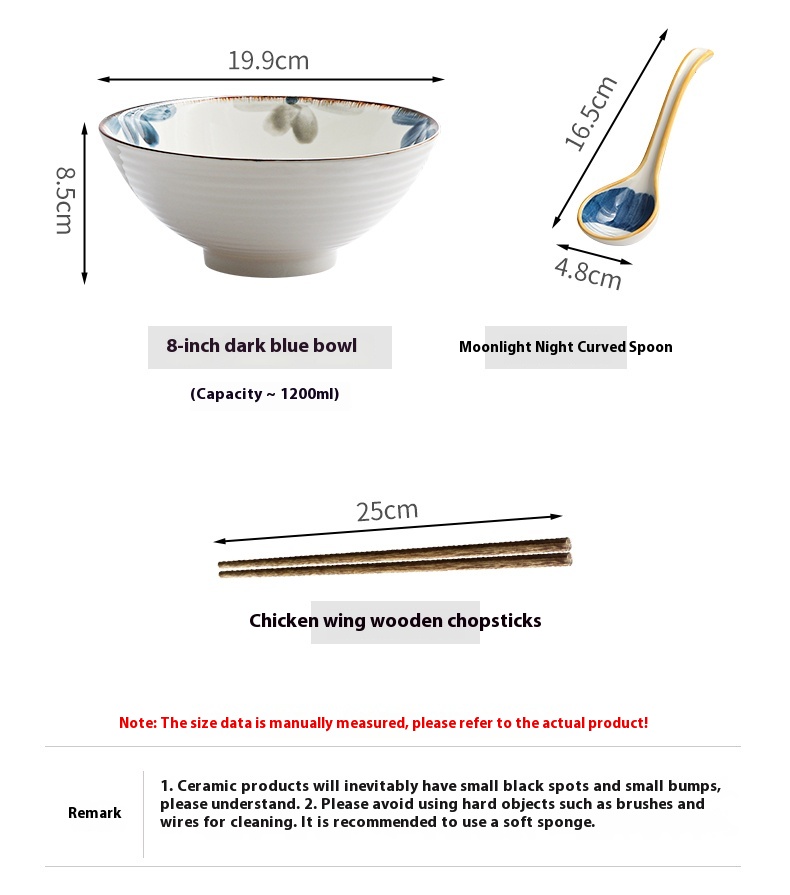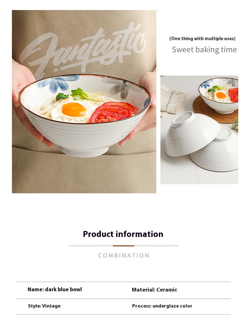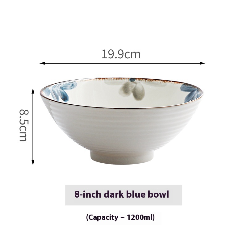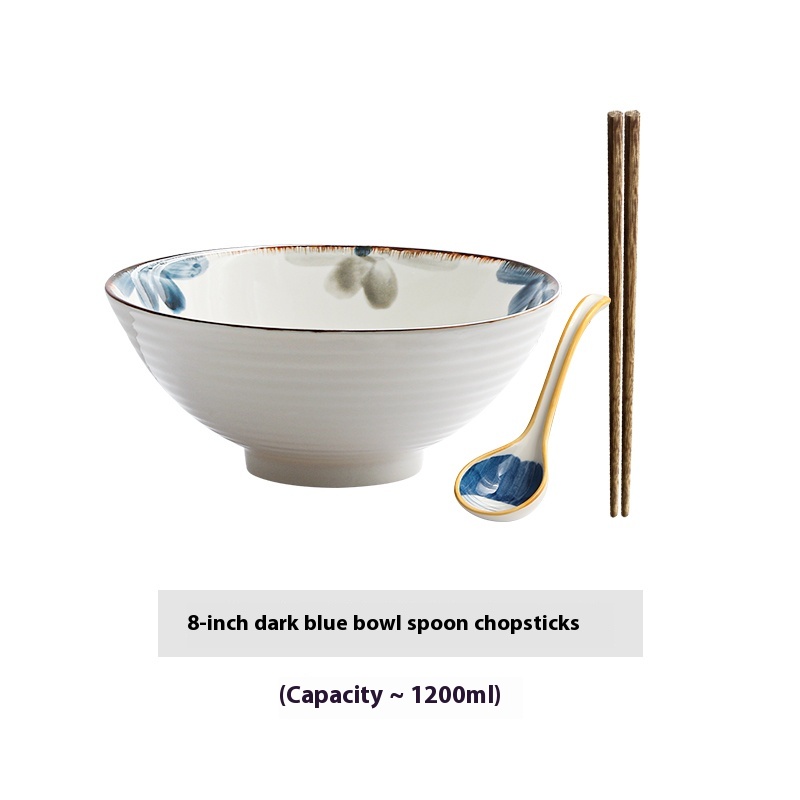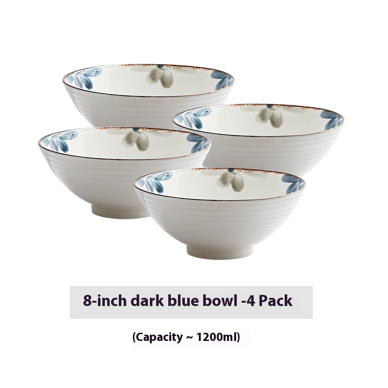 Color: 8-inch ink blue rain-hat shaped bowl, 8-inch ink blue rain-hat shaped bowl spoon chopsticks, 8-inch ink blue rain-hat shaped bowl-4 Pack