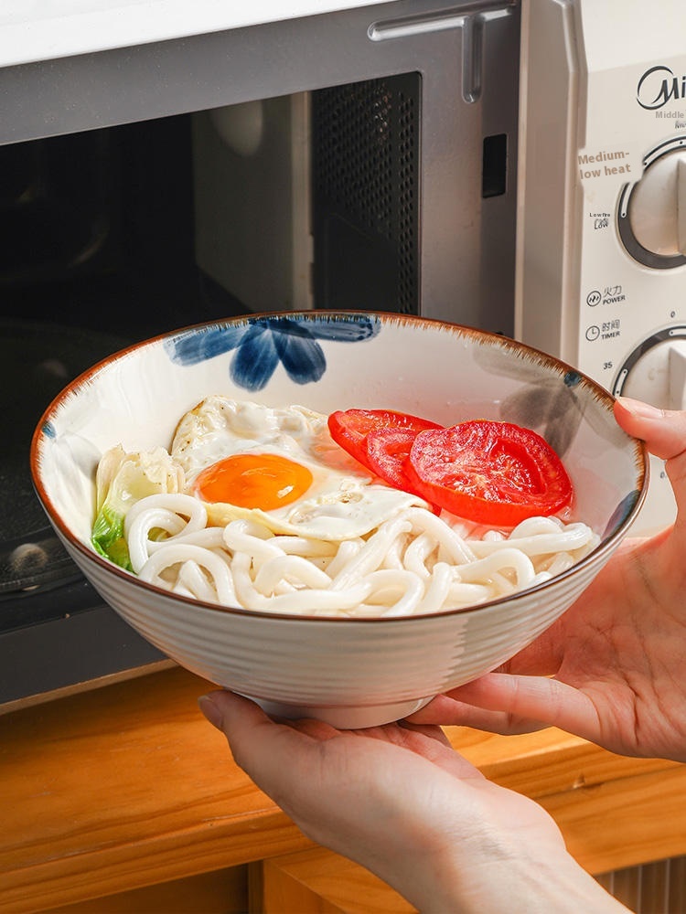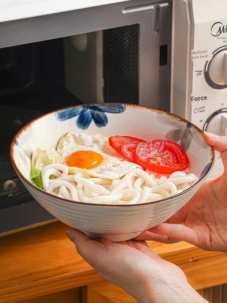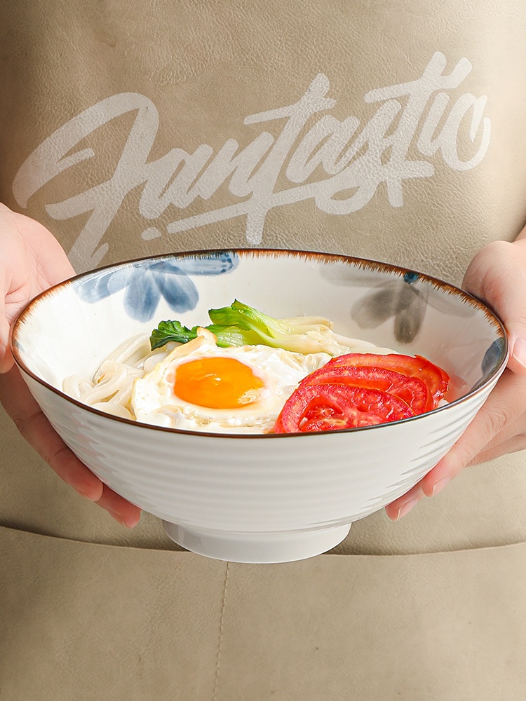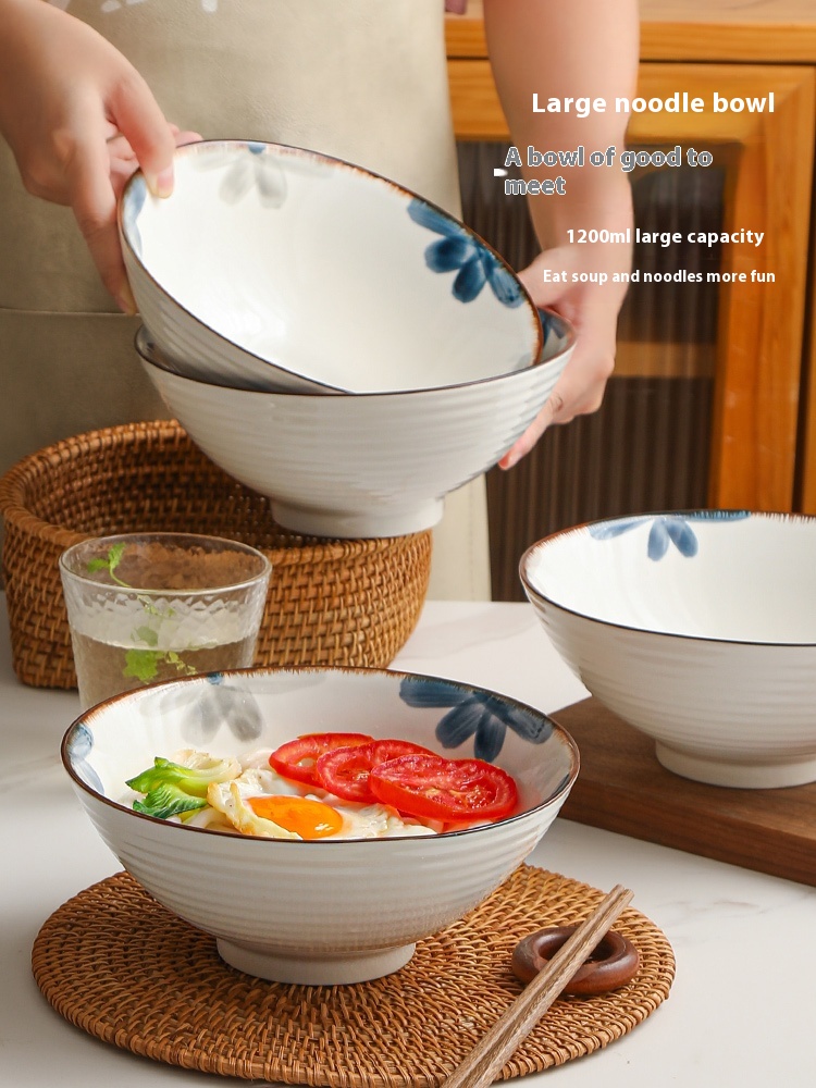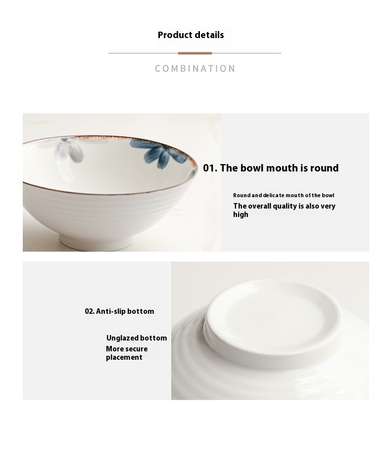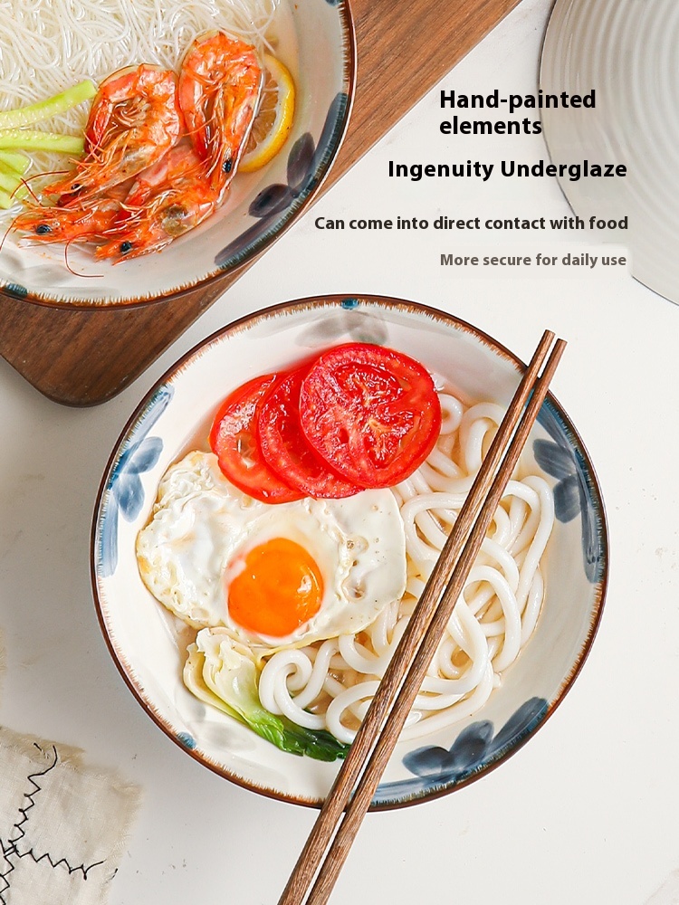 Color: 8-inch ink blue rain-hat shaped bowl, 8-inch ink blue rain-hat shaped bowl spoon chopsticks, 8-inch ink blue rain-hat shaped bowl-4 Pack