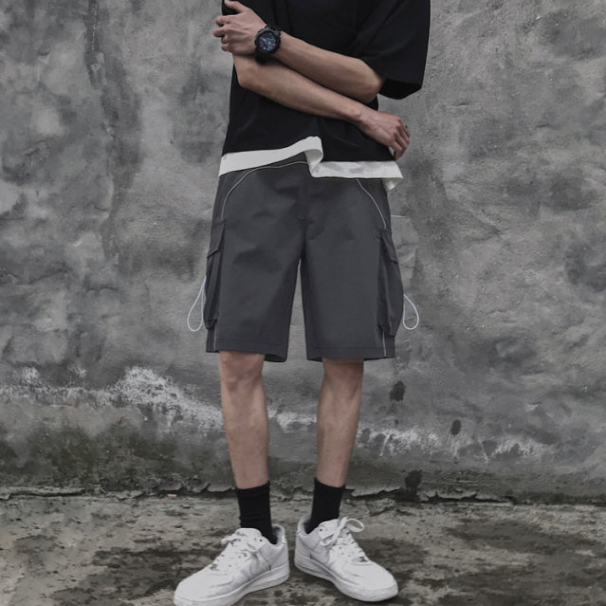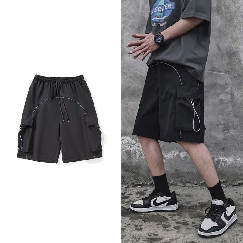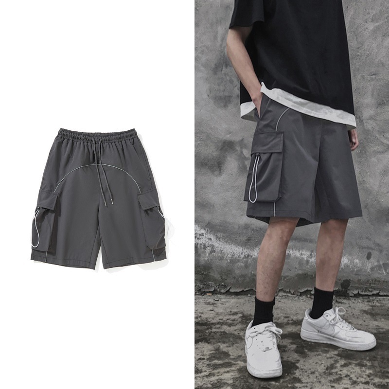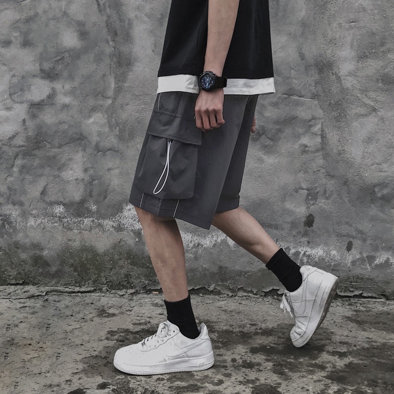 Hong Kong Style Loose Straight Five Points Cargo Shorts