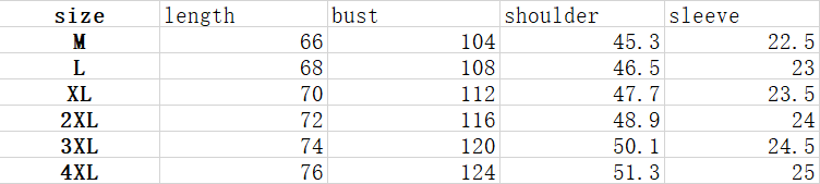 Size: M, L, XL, XXL, XXXL, XXXXL
