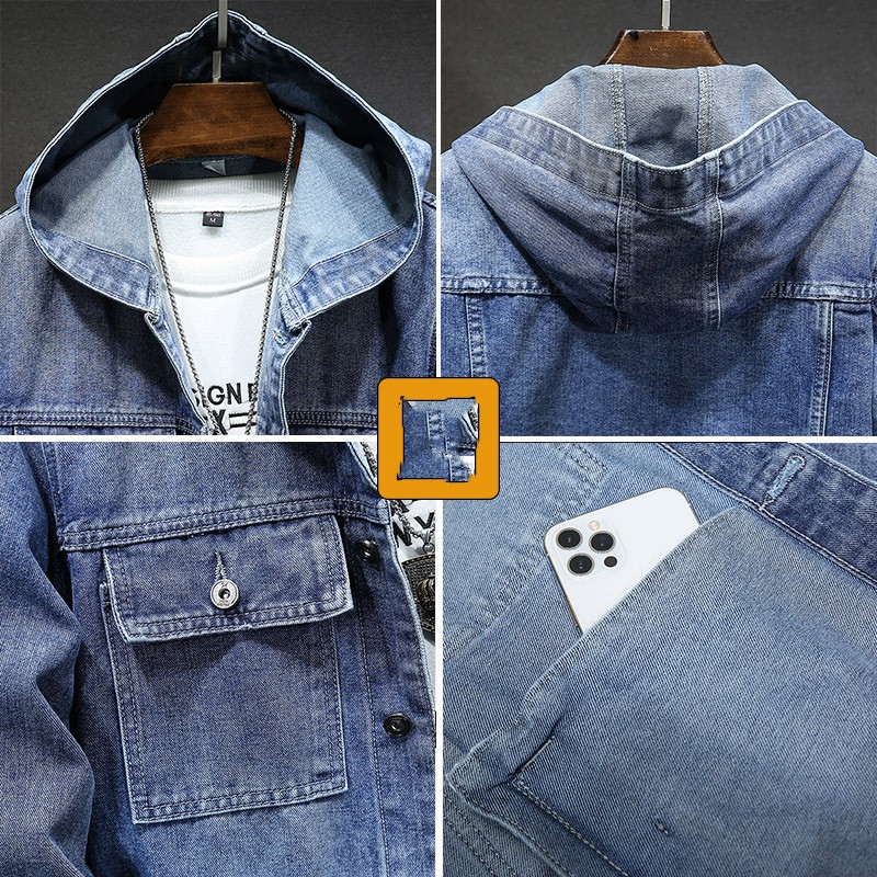 Hooded Denim Jacket Men's Spring