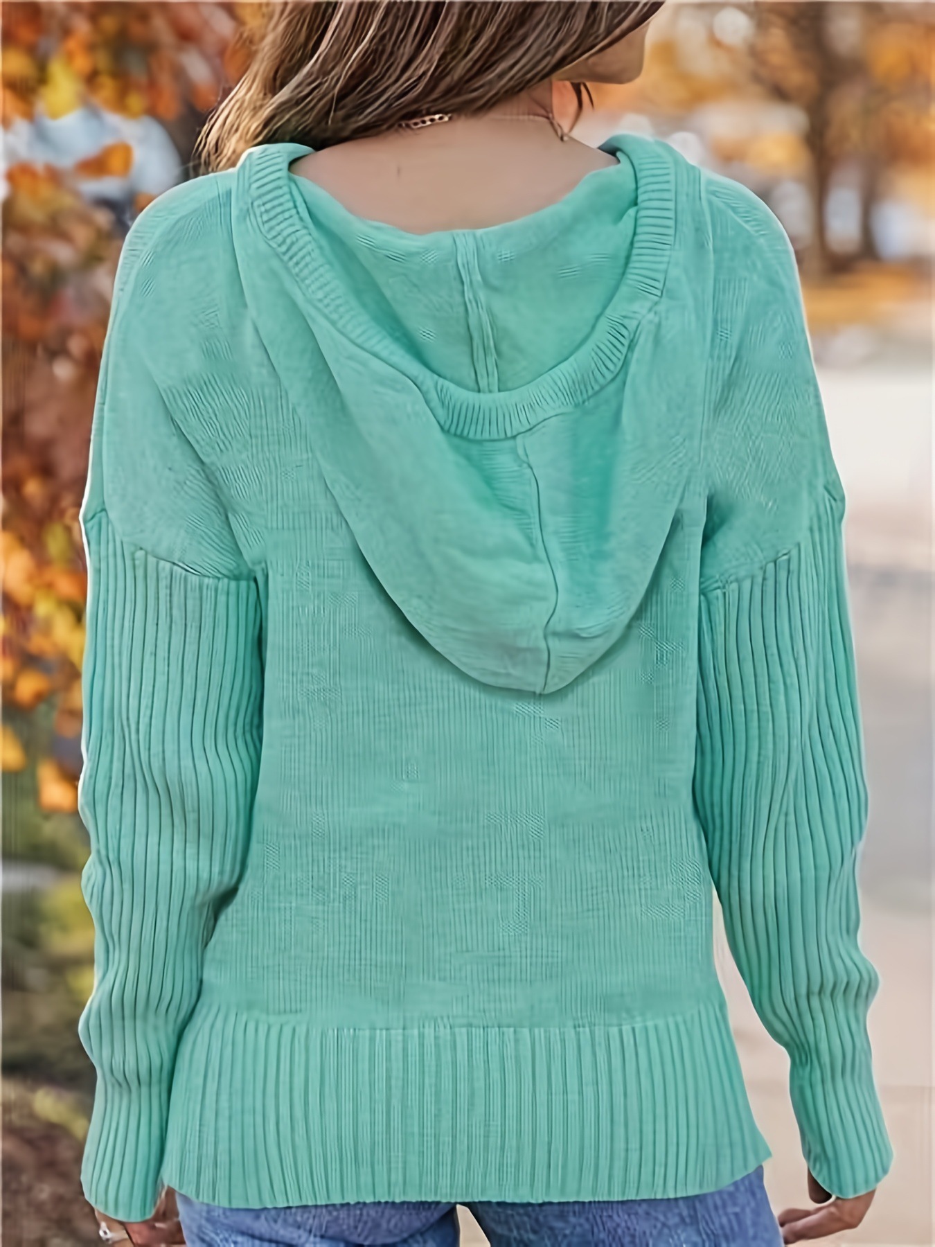 Hooded Drawstring Women's Printed Wear Knitted Pullover