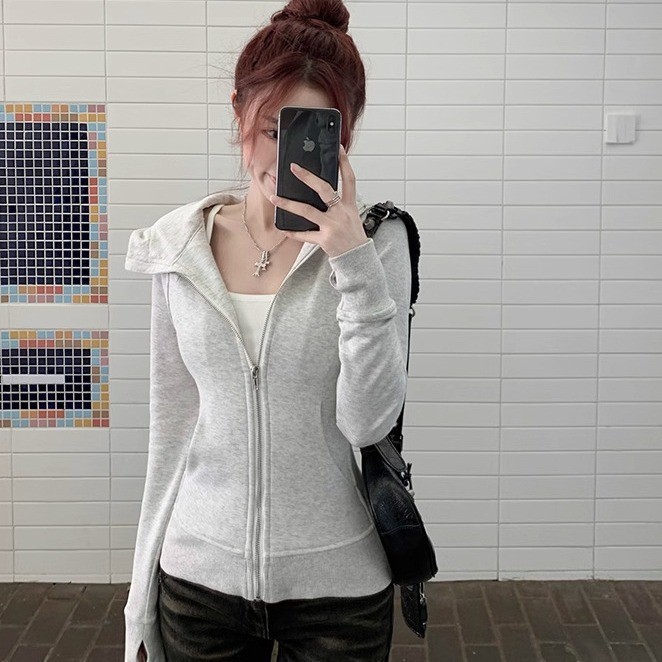 Hooded Gray Sweater For Women Casual Cardigan Coat