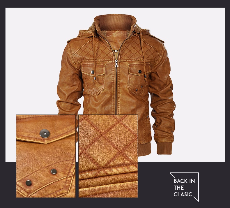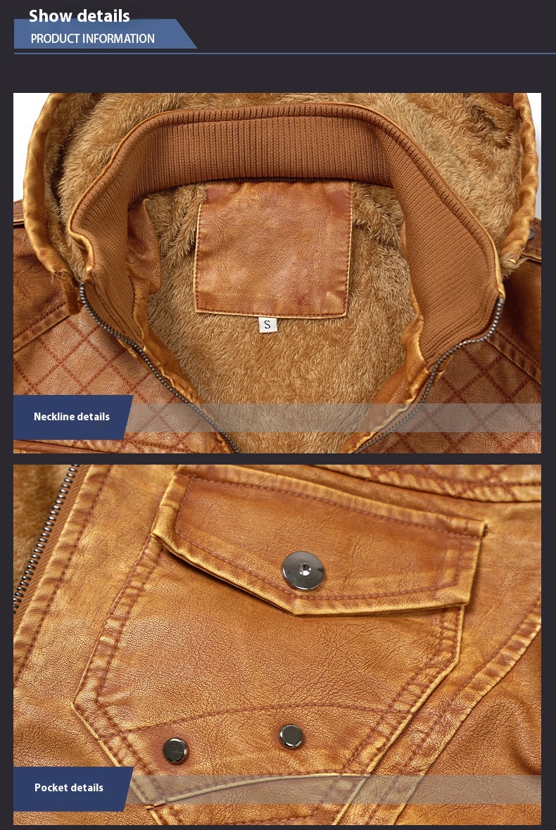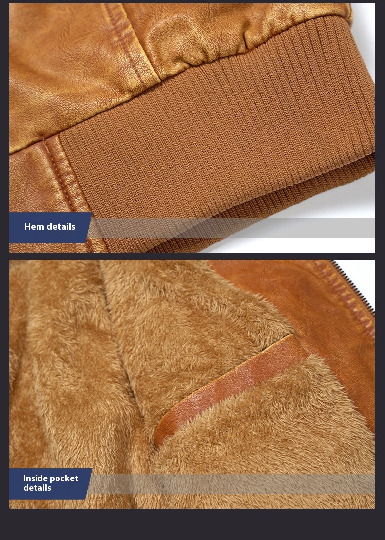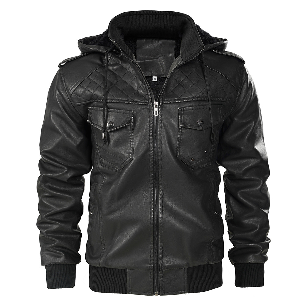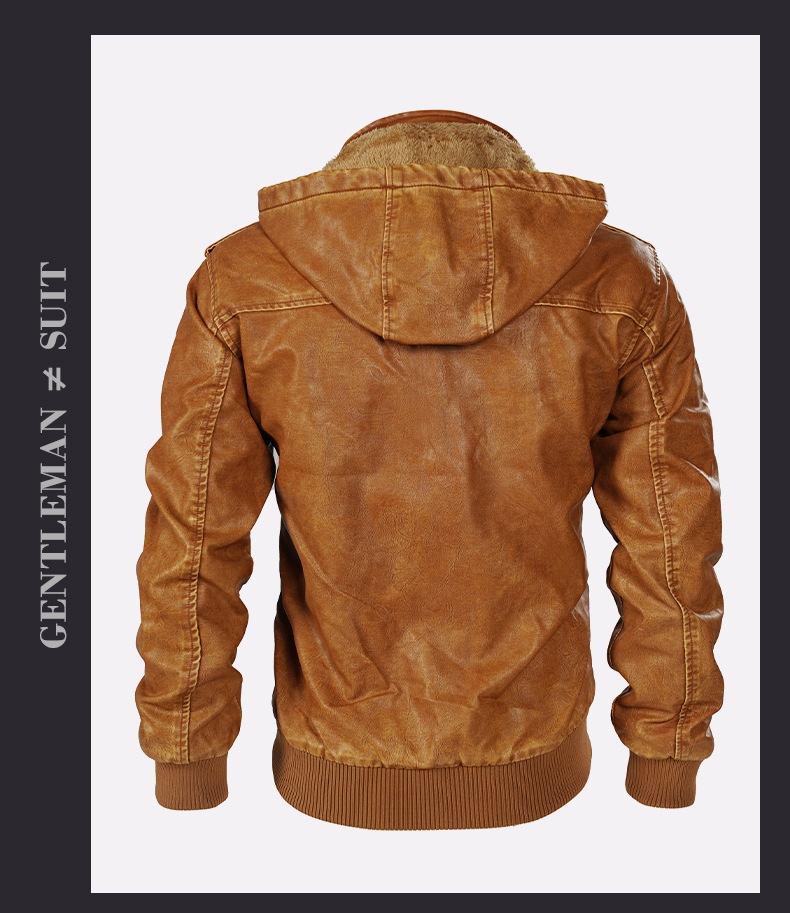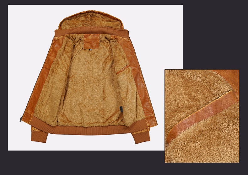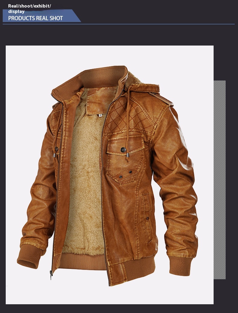 Hooded Leather Jacket Fleece-lined Men's Autumn And Winter New