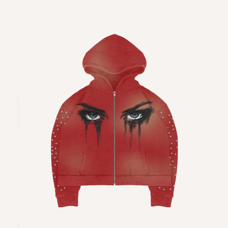 Hooded Long-sleeve Pullover Jacket With Printed Zipper Hoodie