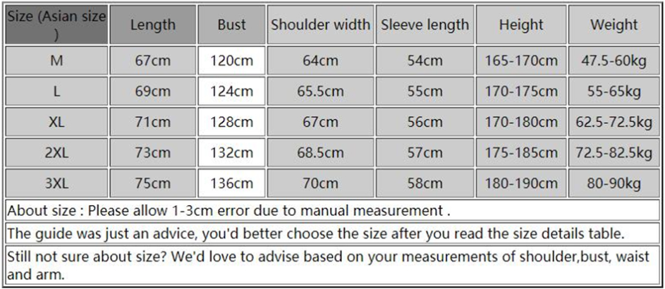 1. Asian sizes are 1 to 2 sizes smaller than European and American people. Choose the larger size if your size between two sizes. Please allow 2-3cm differences due to manual measurement.