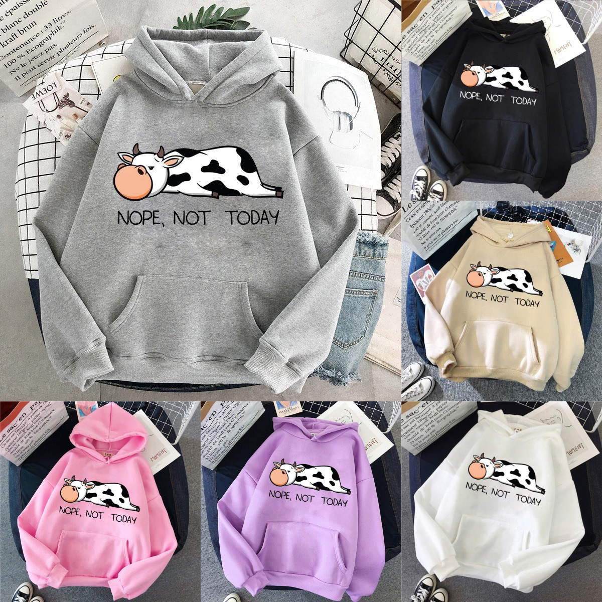 Hooded Sweater Cute Cow Cartoon Print Casual Sports Hoodie