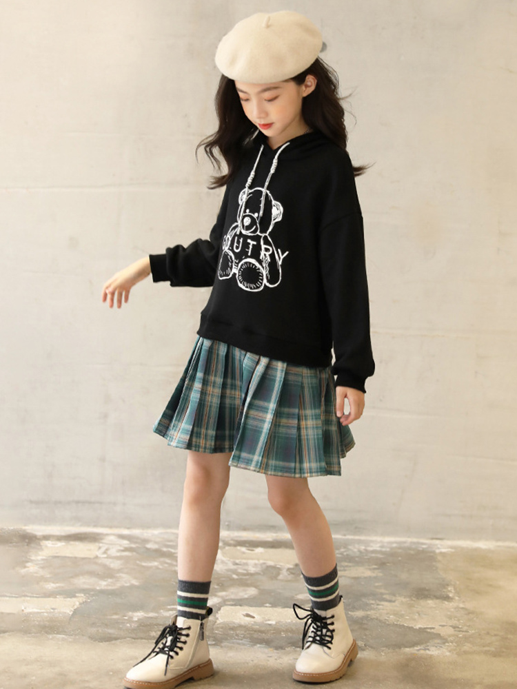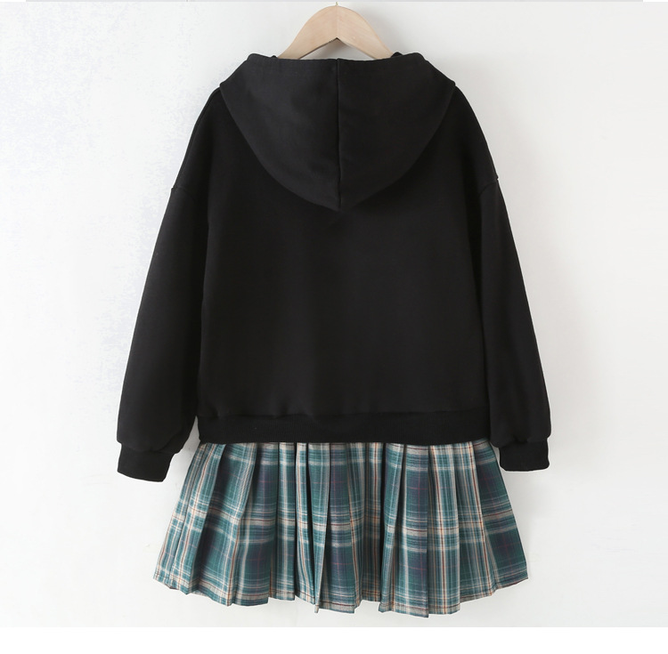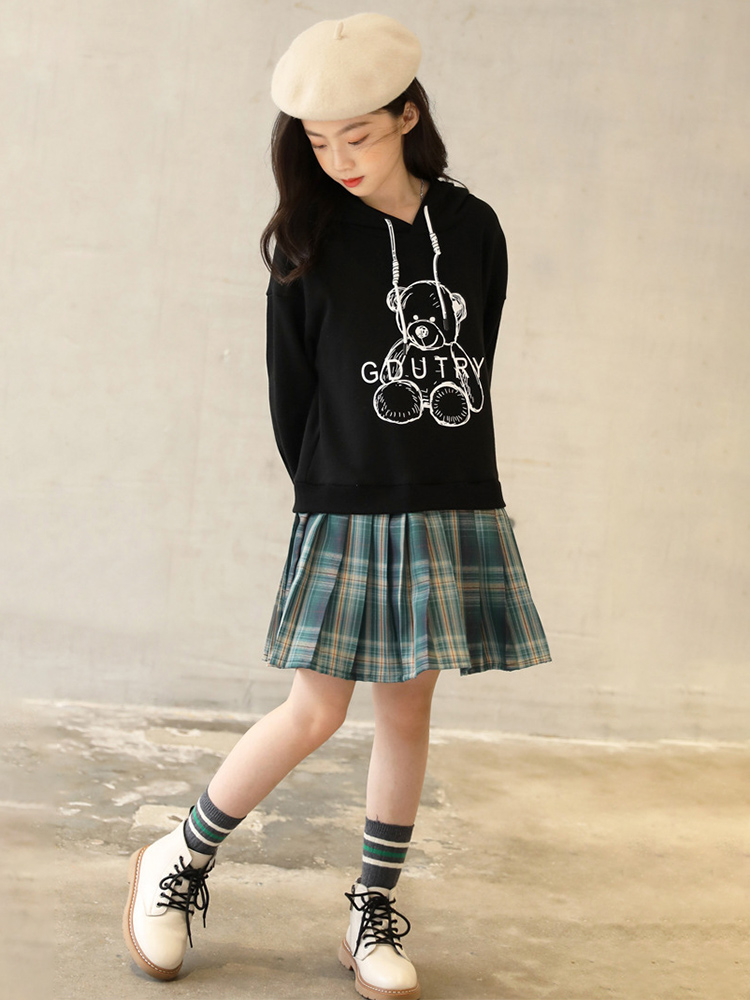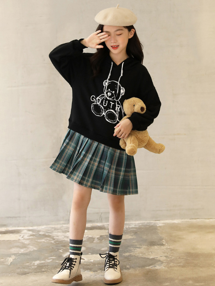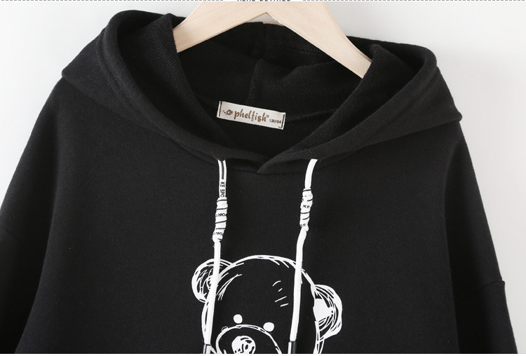 Hooded Sweater Dress Cartoon Print Casual Dress With Pleated