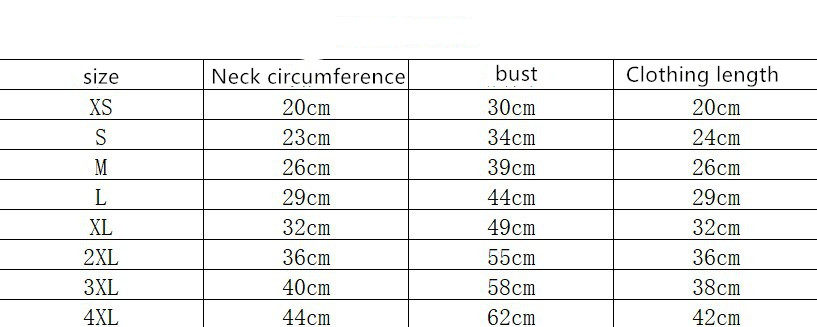 Pet size: XS. S. M. L. XL. 2XL. 3XL. 4XL.