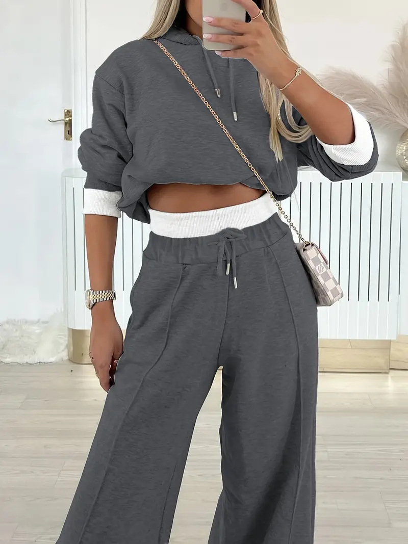 Hooded Top And Wide-leg Pants Set For European And American Styles