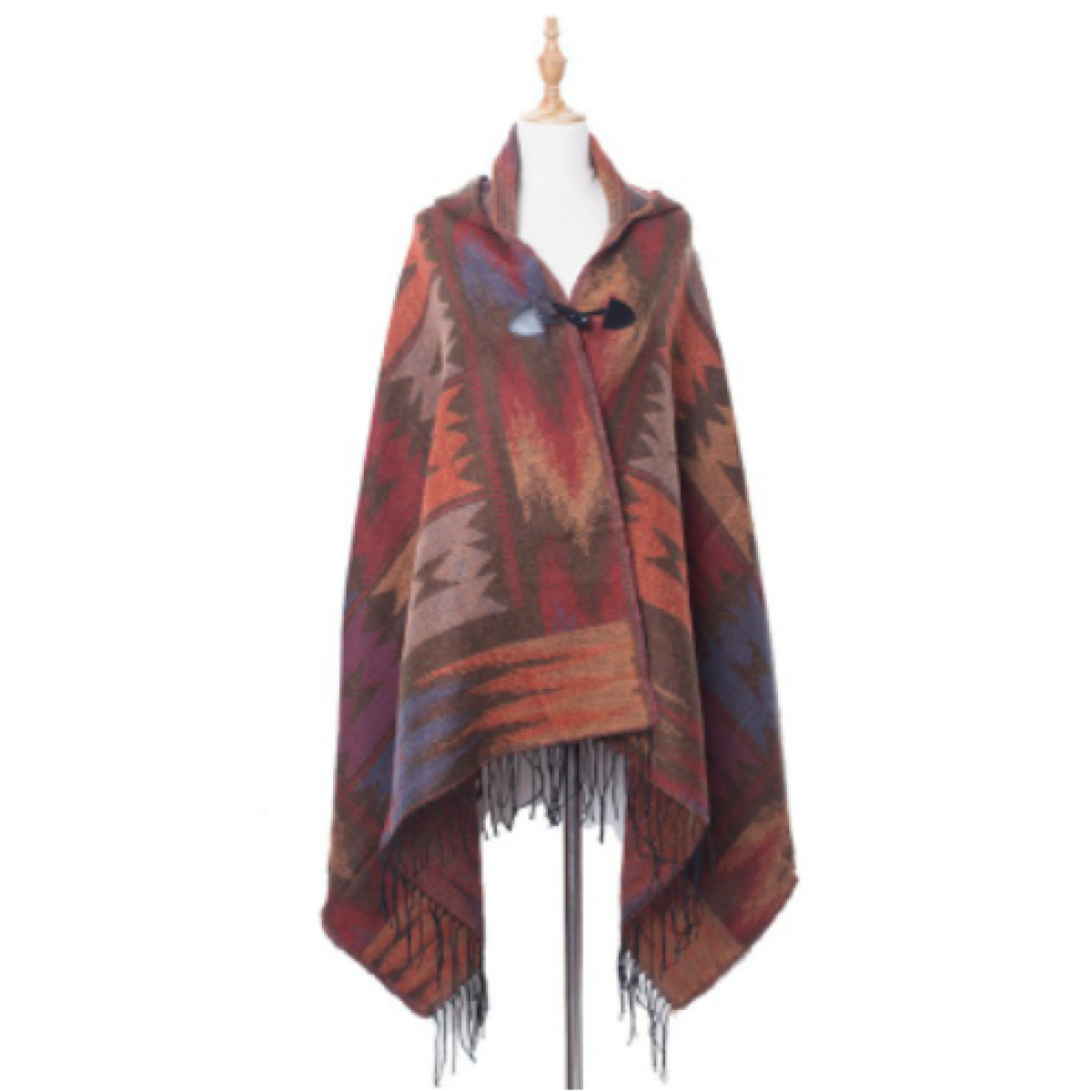 Horn Button Ethnic Style Hoodie Cloak Shawl