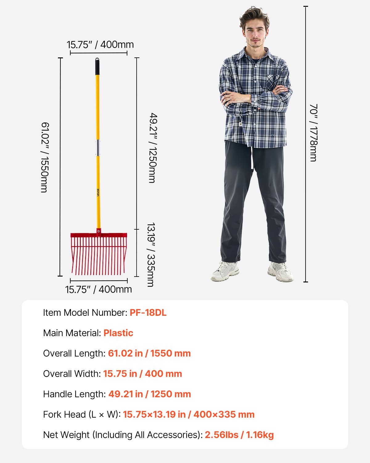 Horse Manure Fork Garden Tool 18 Angled Tine Plastic Pitchfork Muck Rake For Hay