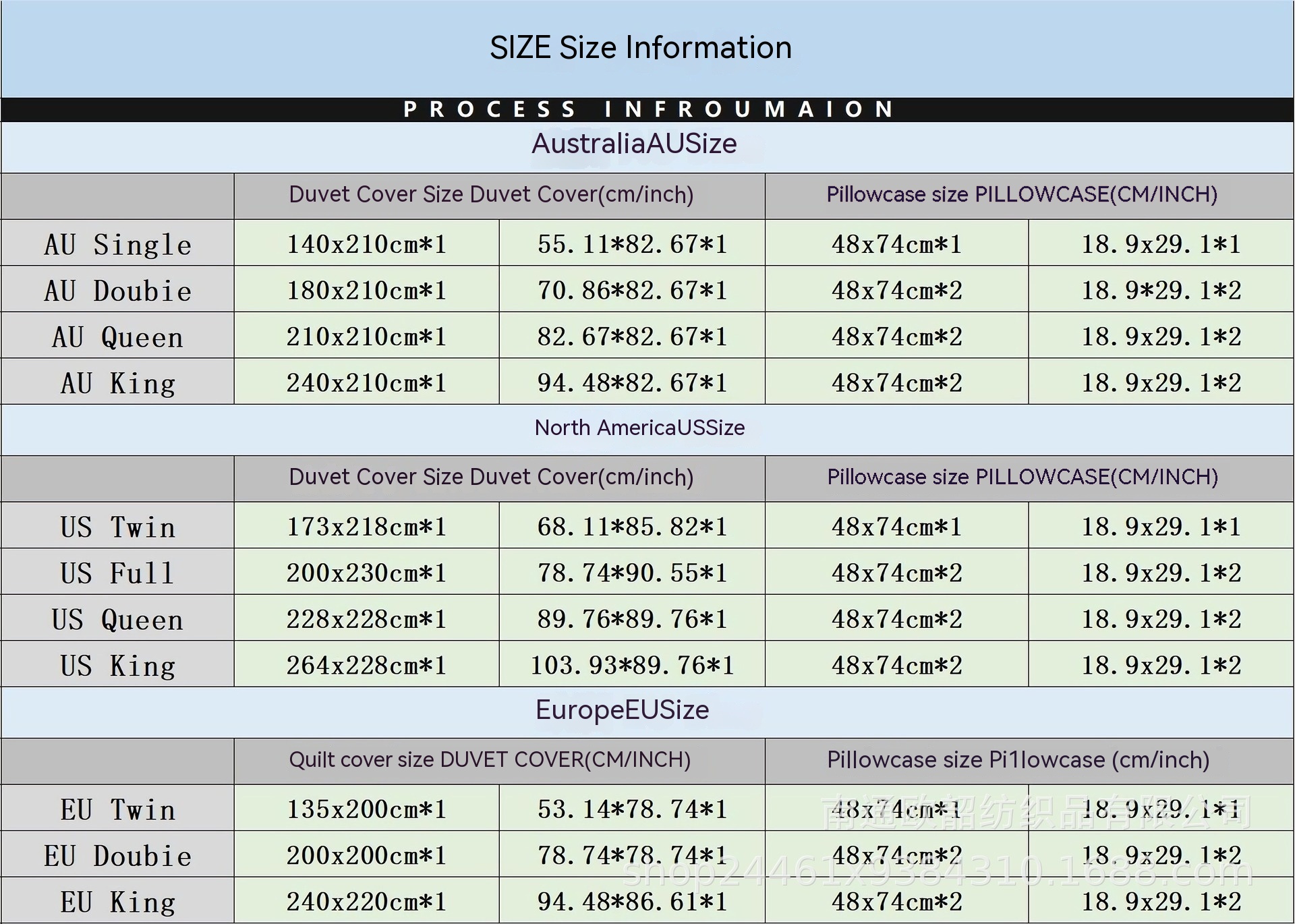 Size specification: AU single quilt cover 140*210 pillowcase 50*75*1,AU double quilt cover 180*210 pillowcase 50*75*2,AU queen quilt cover 210*210 pillowcase 50*75*2, American double quilt cover 173*218 pillowcase 50*75*1, American full quilt cover 200*230 pillowcase 50*75*2, US queen quilt cover 229*229 pillowcase 50*75*2, US King quilt cover 264*228 pillowcase 51*91*2, EU twin quilt cover 135*200 pillowcase 50*75*1, EU double quilt cover 200*200 pillowcase 50*75*2, ouwang quilt cover 220*240 pillowcase 50*75*2, quilt cover 70*133 pillowcase 50*75*1