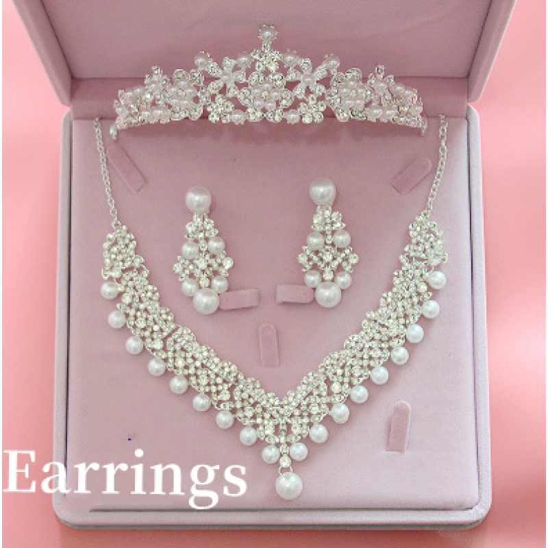 Hot bridal jewelry three sets of Korean big crown Wedding Pearl Necklace Set wedding accessories wholesale