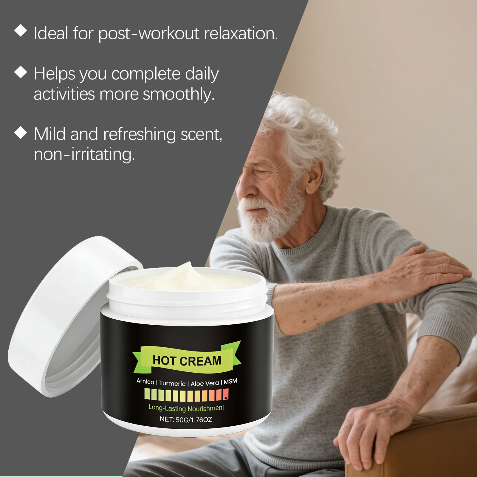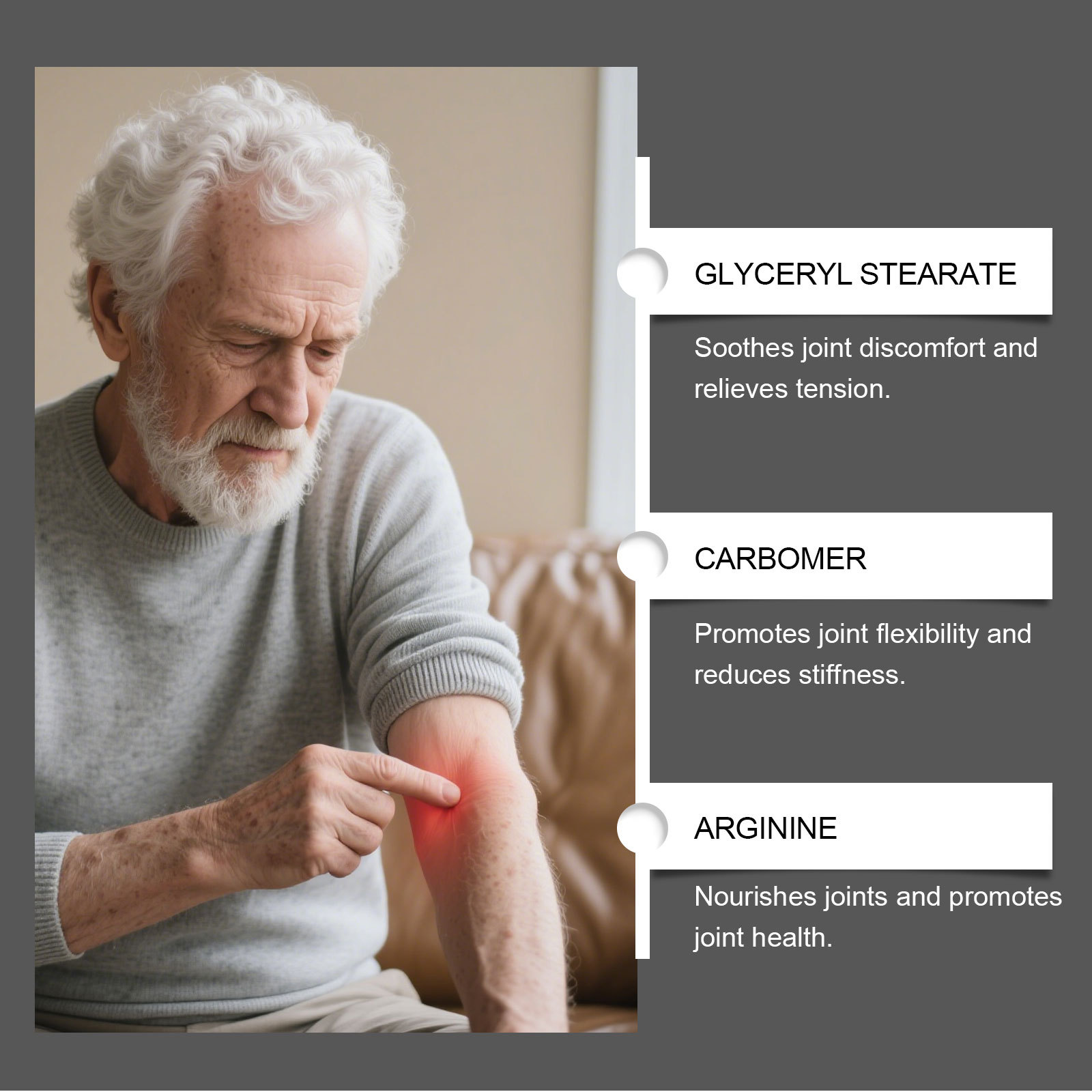Ingredients: water, mineral oil, glycerin, glyceryl stearate, 1,2- hexanediol, carbomer, arginine, Arnica extract, turmeric root extract, aloe vera extract, dimethyl sulfone, peppermint leaf oil, grapefruit seed extract, tea oil, rosemary leaf oil and frankincense resin extract.