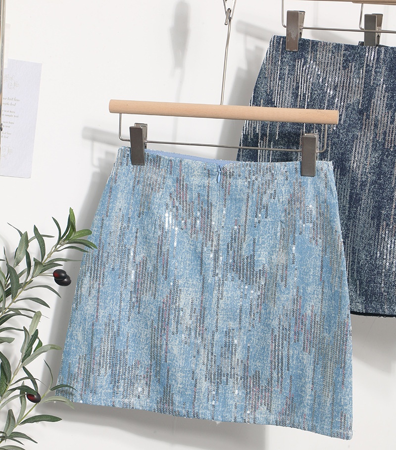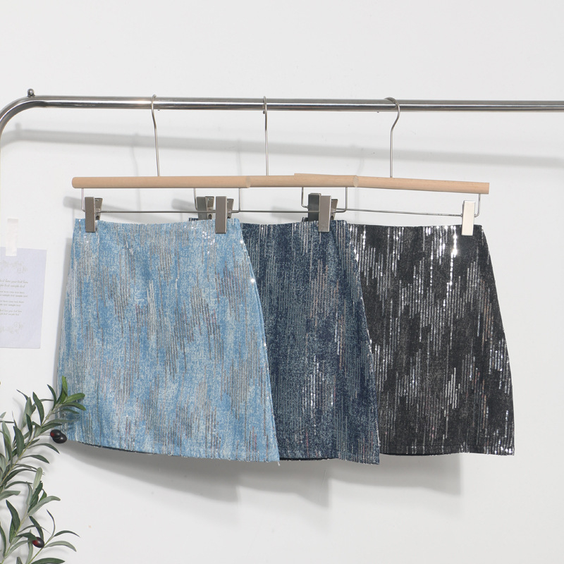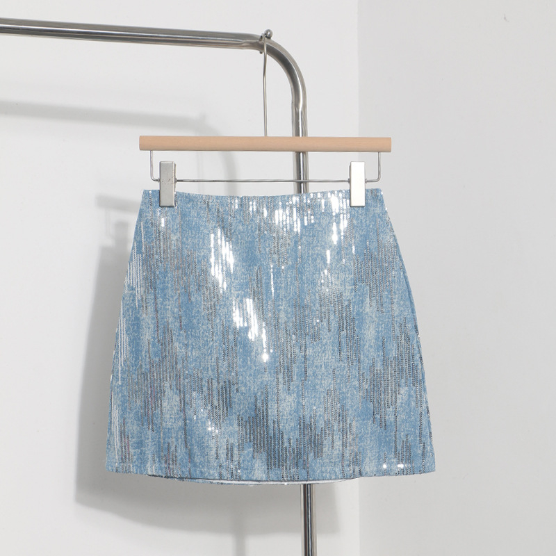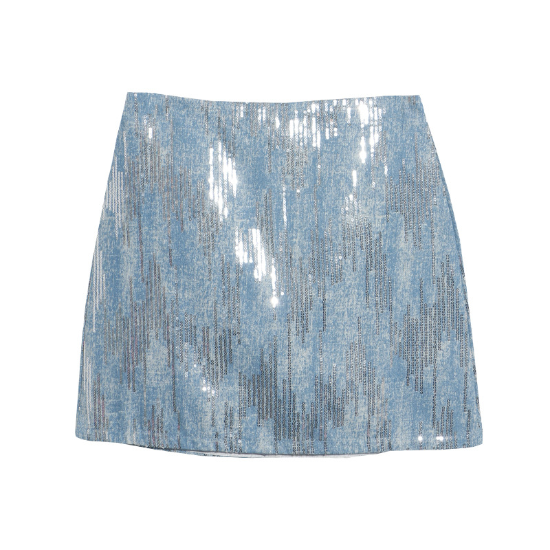 Hot Girl High Waist A- Line Sequined Skirt Shiny Skirt