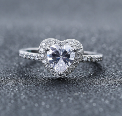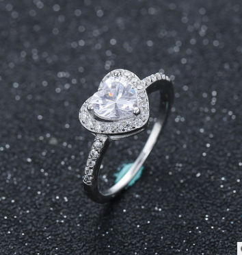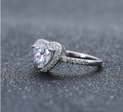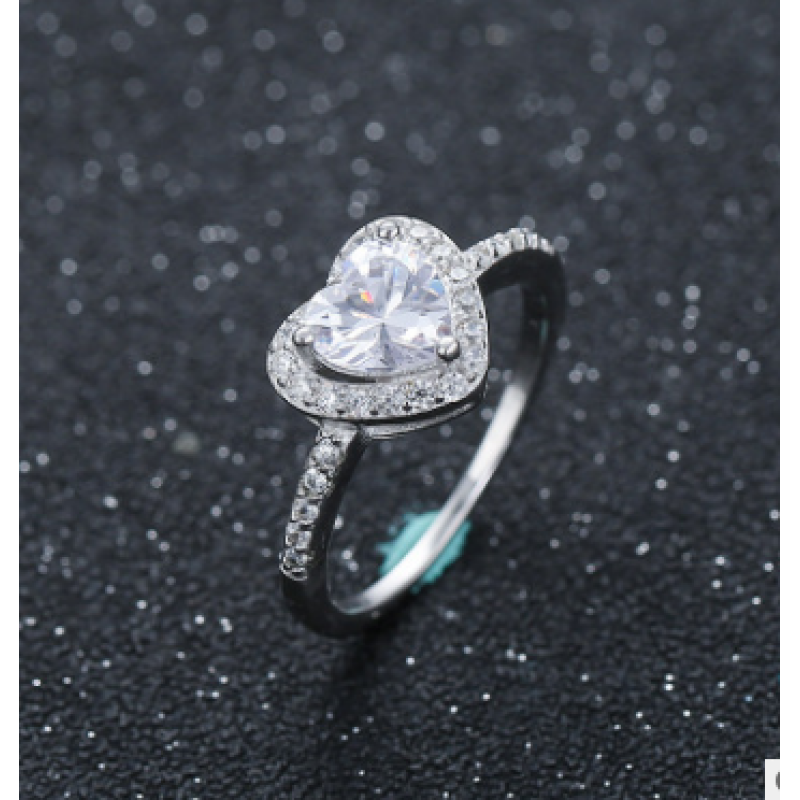 Heart-shaped zircon white copper female ring