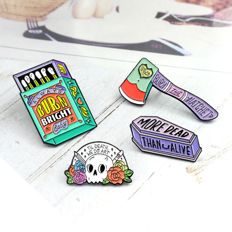 Cross-border hot sale new cartoon skull matchbox and axe combination brooch fashion jewelry