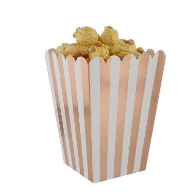 10: 8 popcorn paper boxes, hot rose gold, vertical stripes,