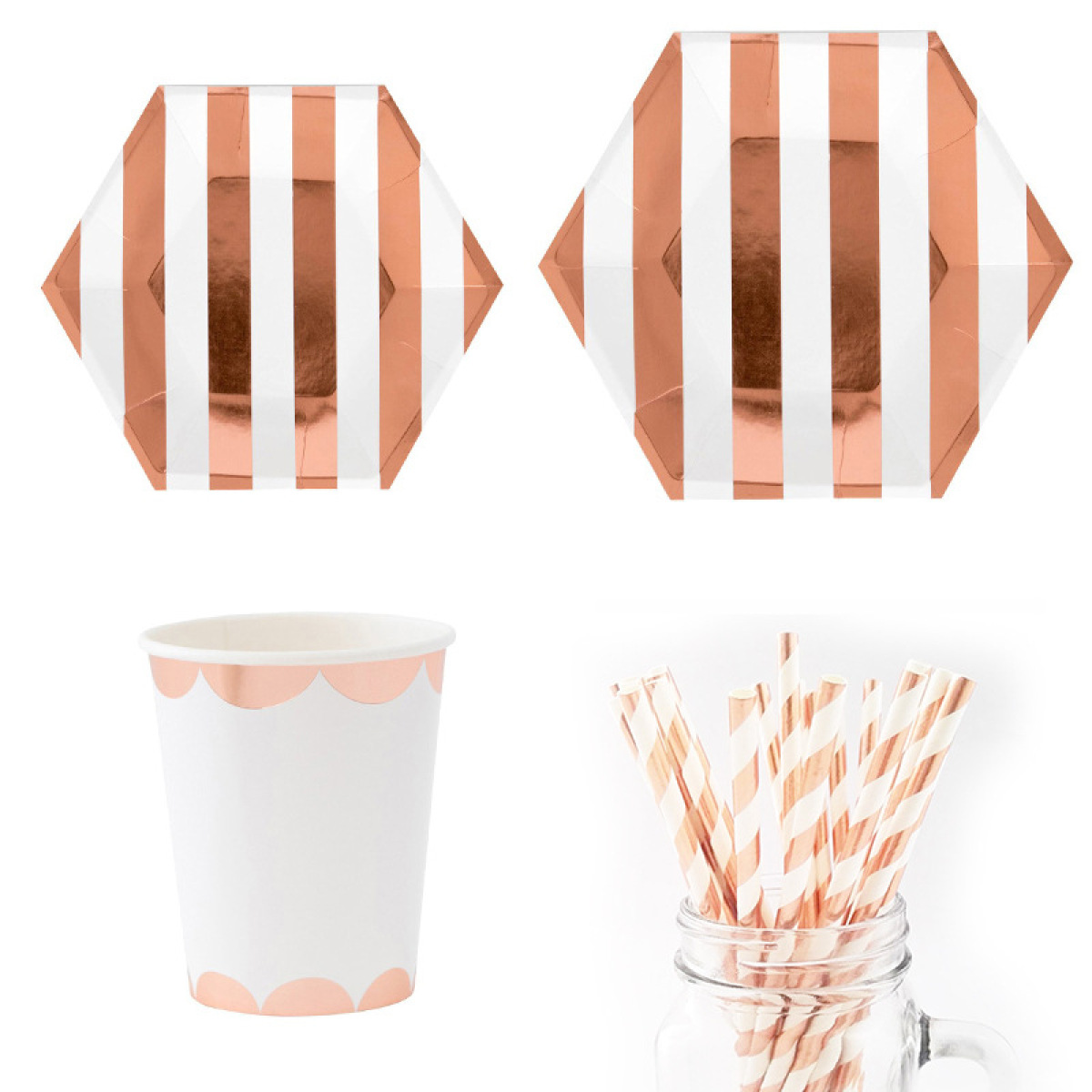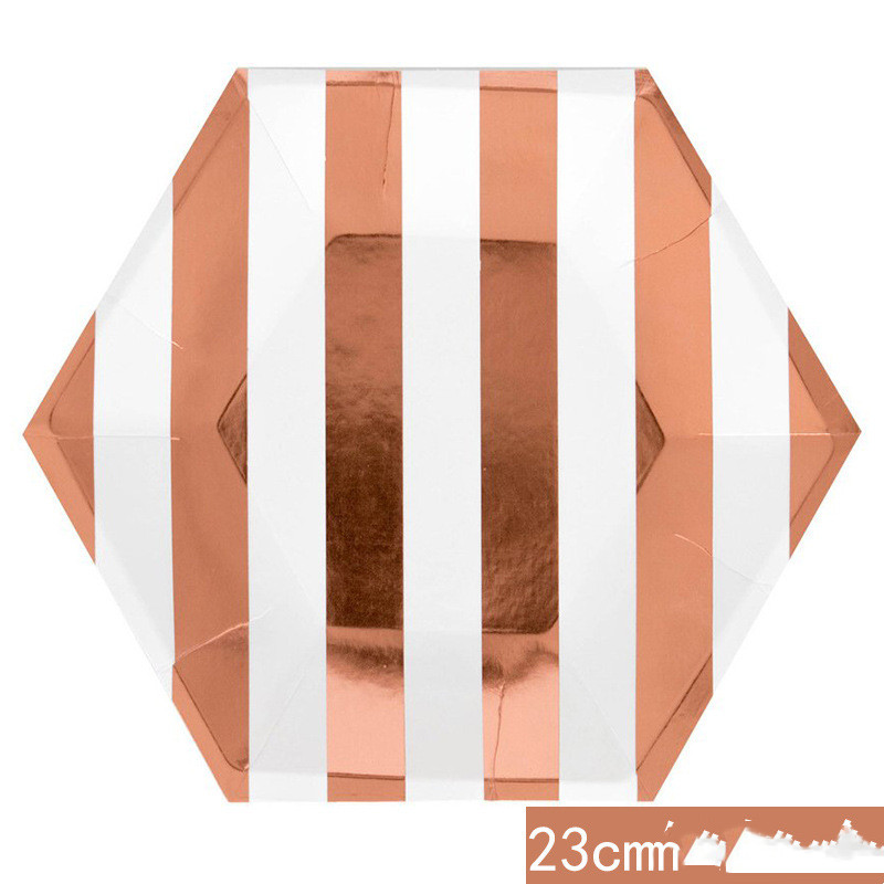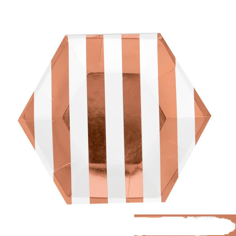 2: 8 pieces of hexagonal paper 8 inch 22cm hot rose gold stripes,