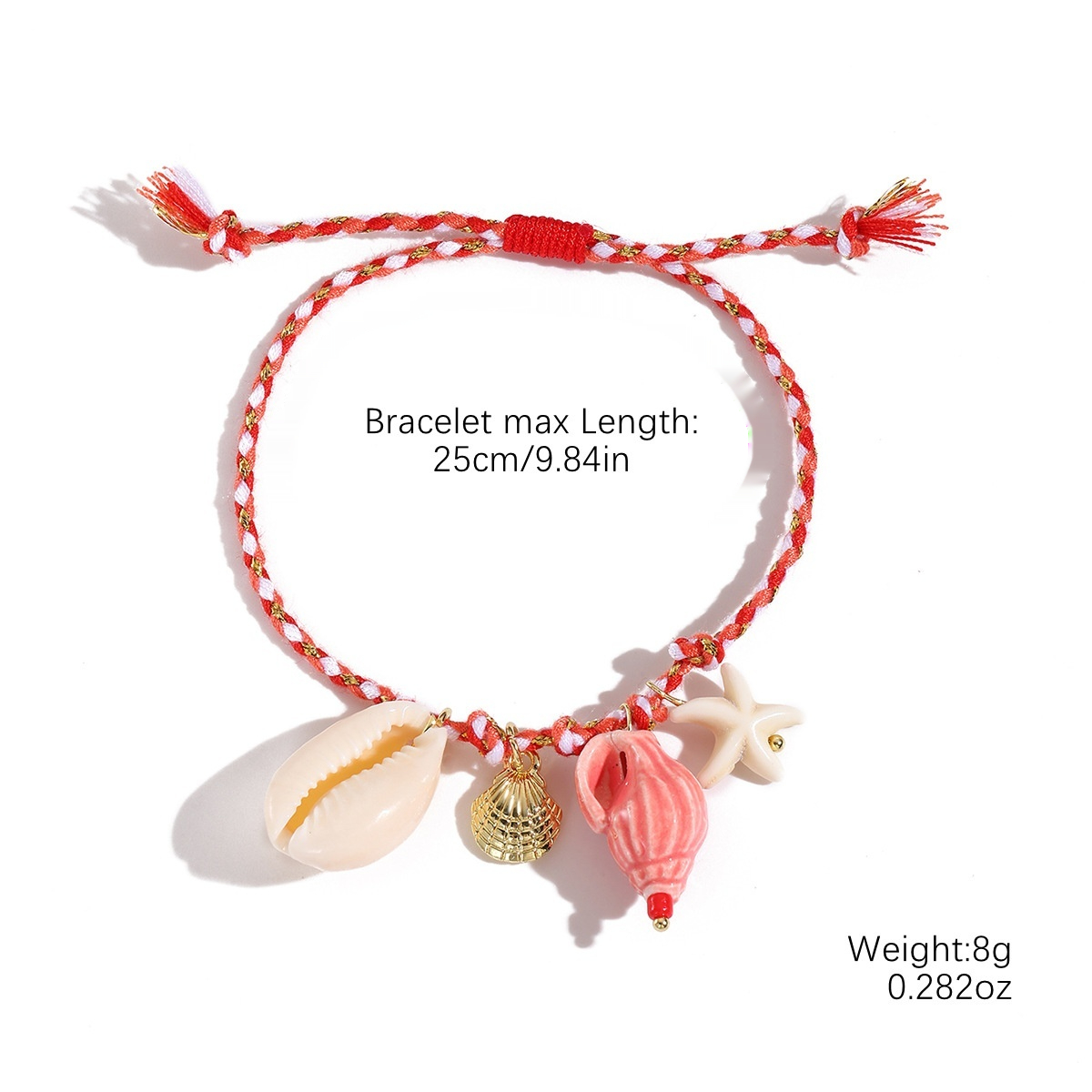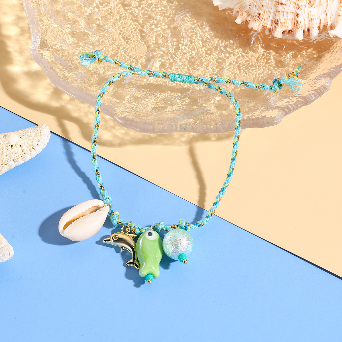 Style: N240934 red, N240935 purple, N240936 yellow, N240937 Green, N250528 pink beads, N250527 blue beads, N250612 orange conch, S25041 red bracelet, S25042 purple bracelet, S25043 orange bracelet, s25044 green bracelet, S25045 orange alloy bracelet, S25046 green starfish bracelet