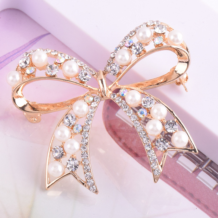 Product information:Type: Brooch Color: small Pearl bow Style: Women's Material: Alloy Shape: Bow