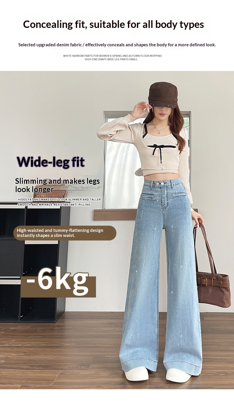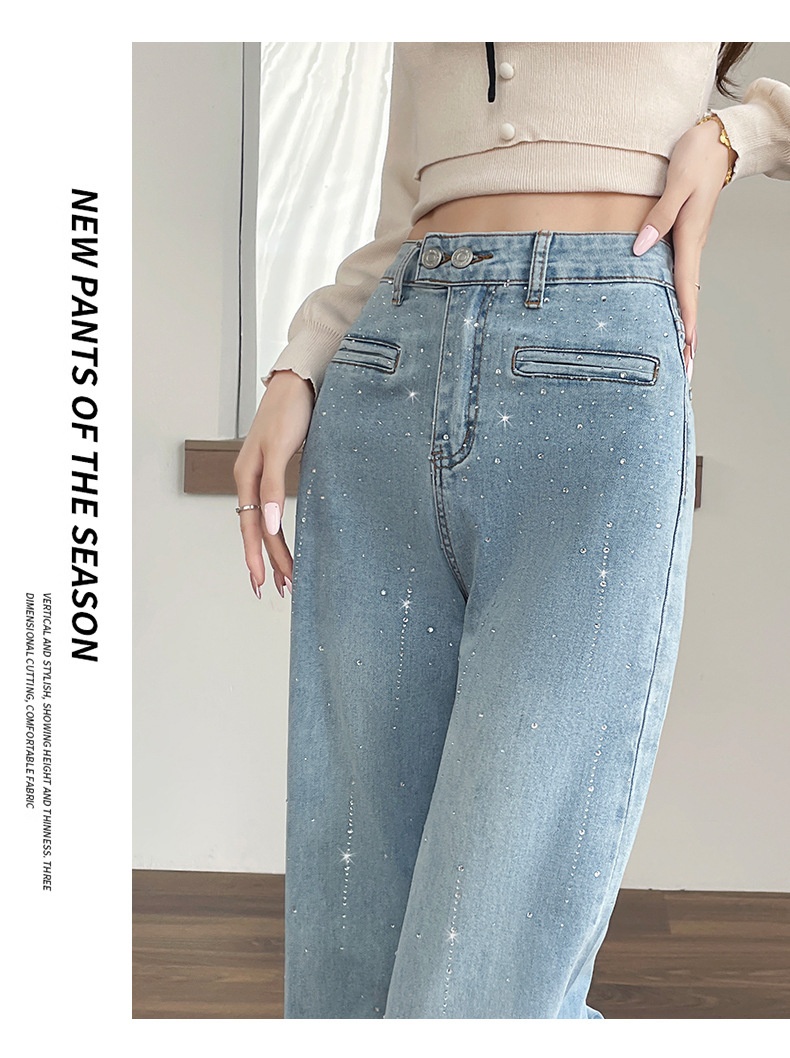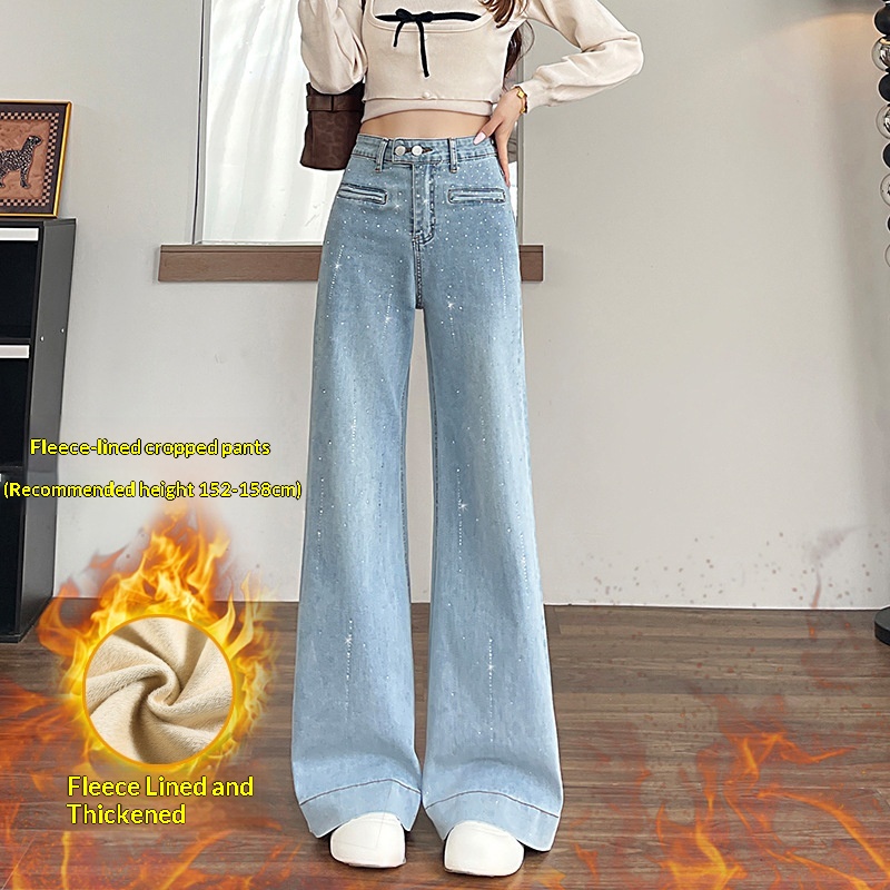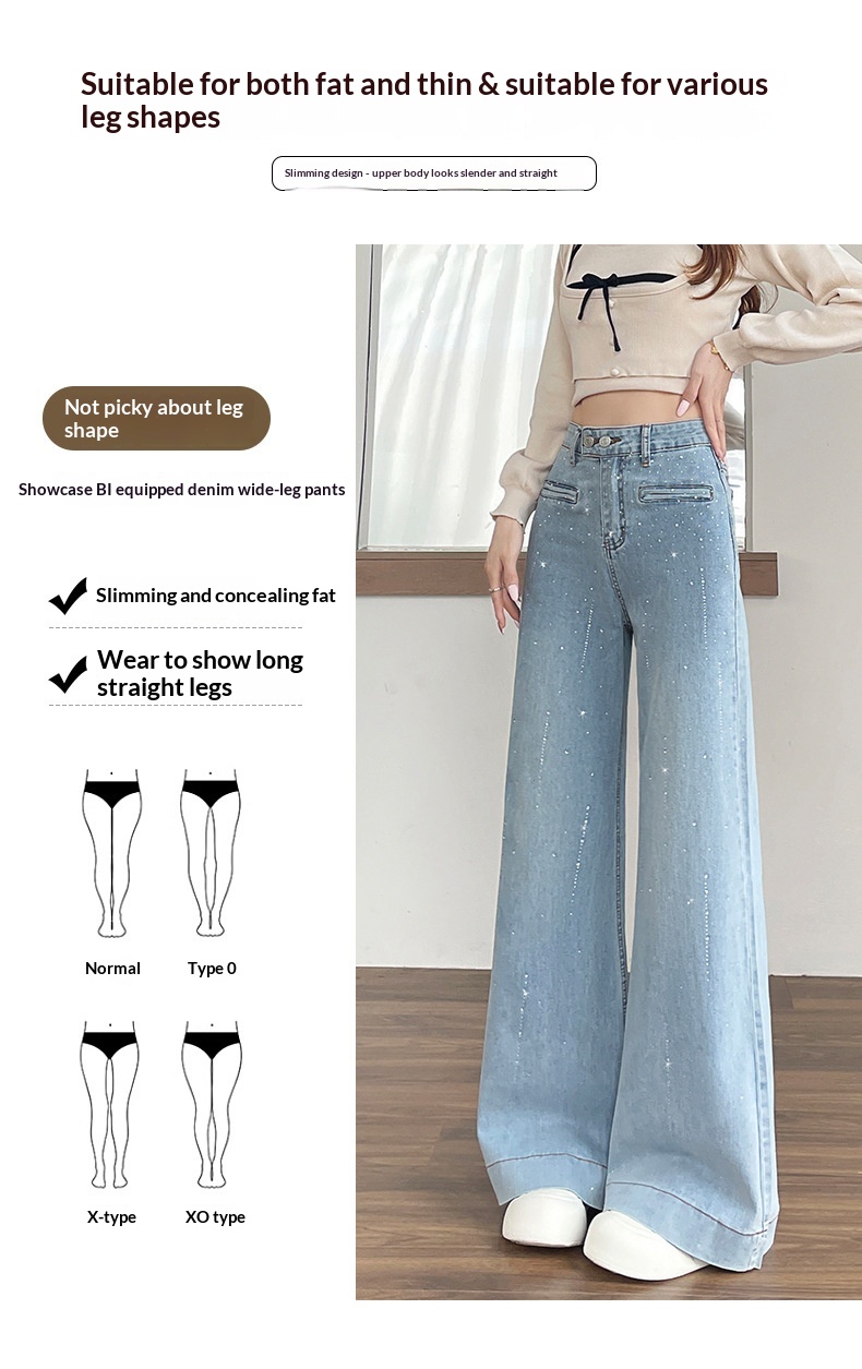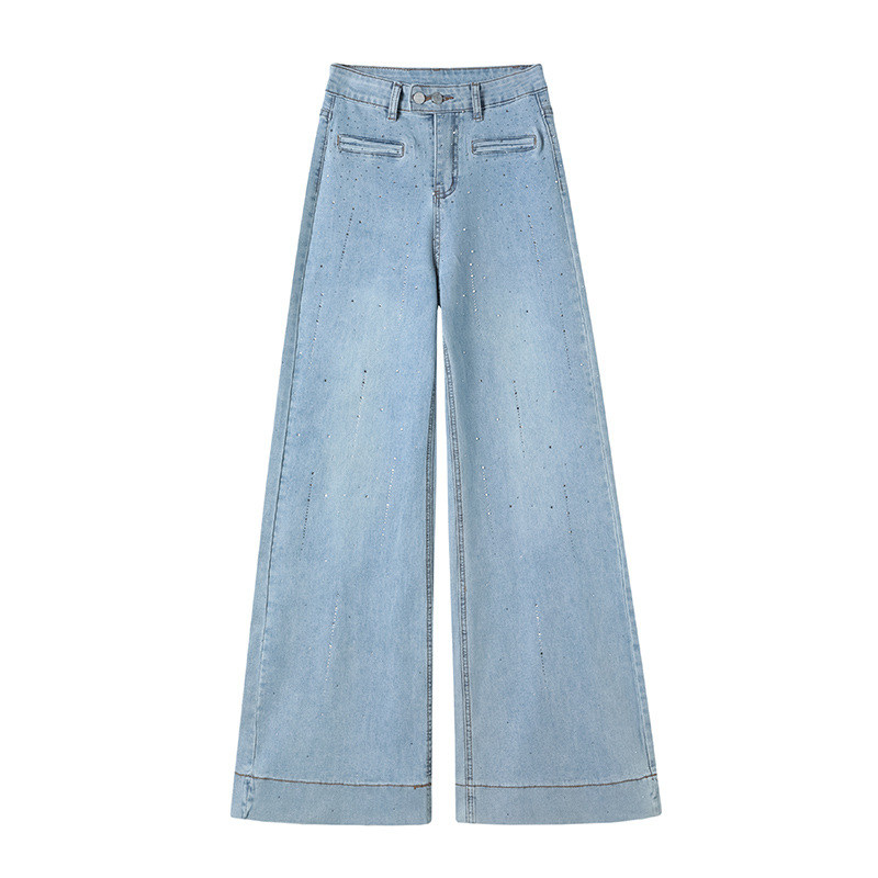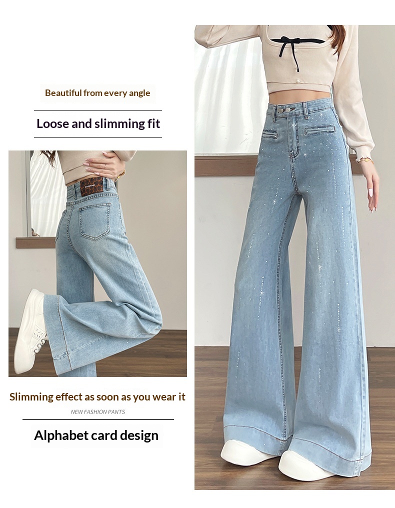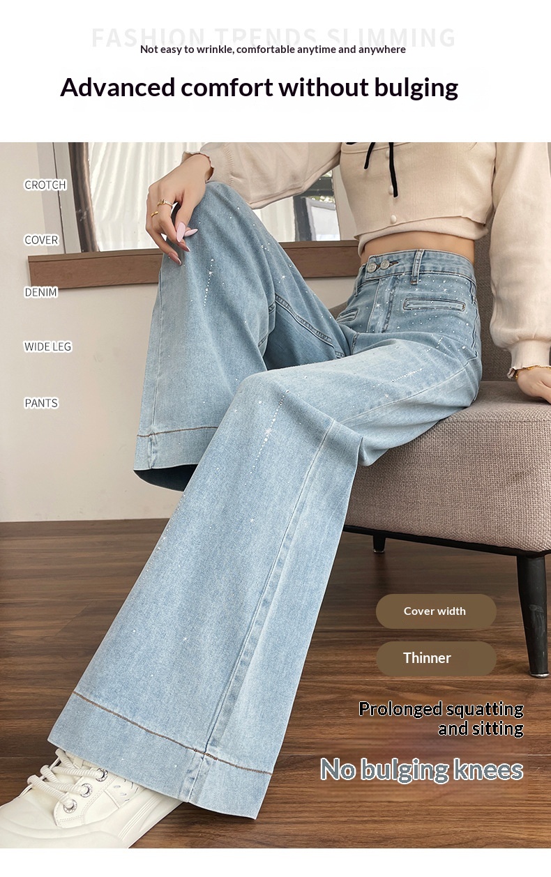 Hot-stone Embellished High-waisted Slimming Wide-leg Jeans