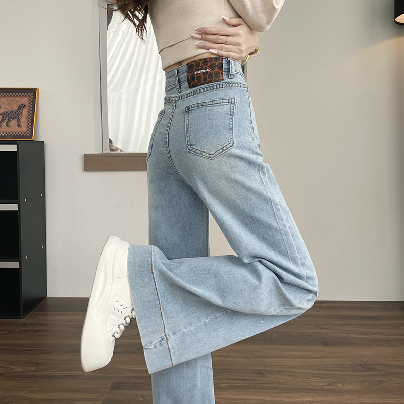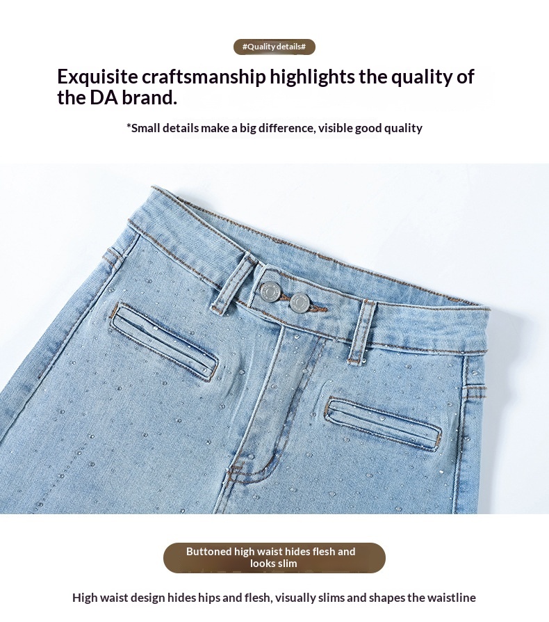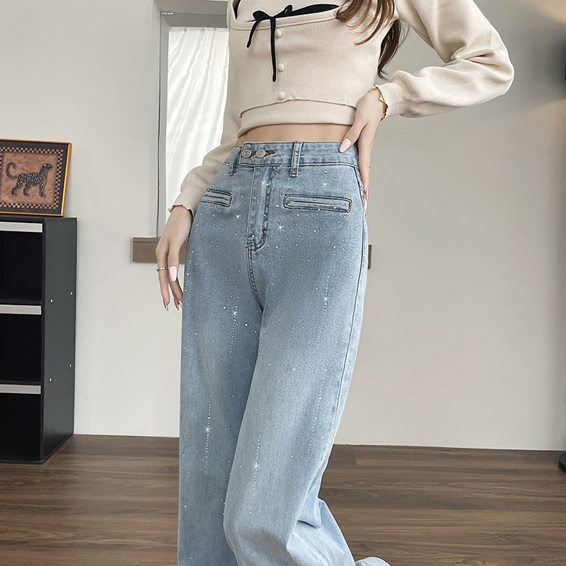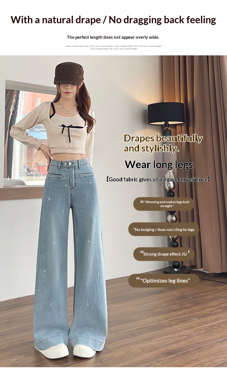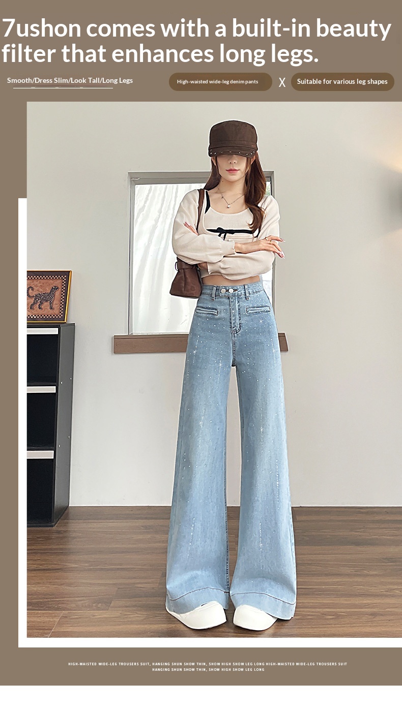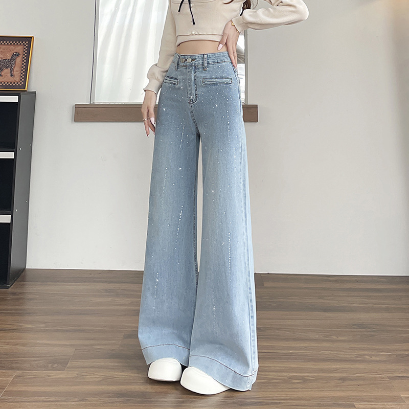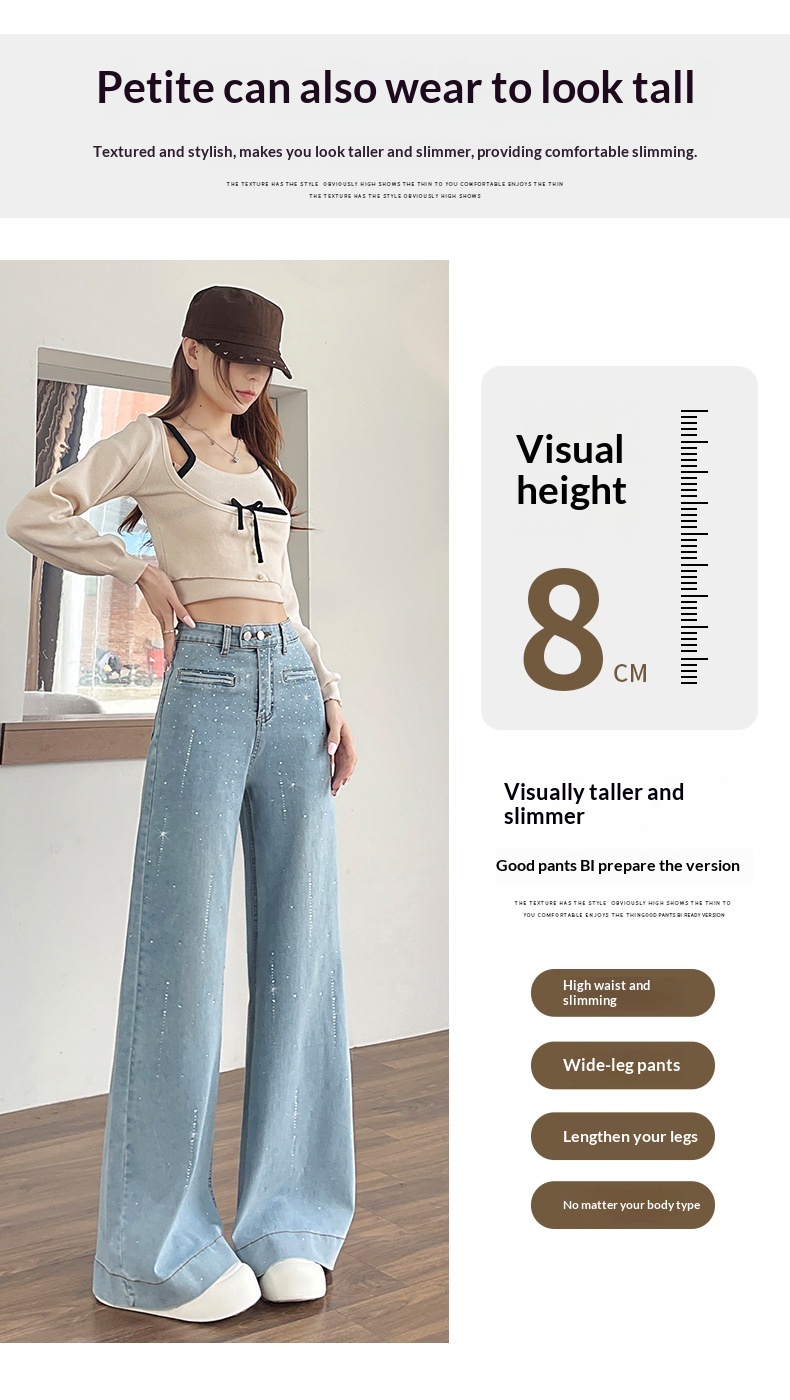 Hot-stone Embellished High-waisted Slimming Wide-leg Jeans