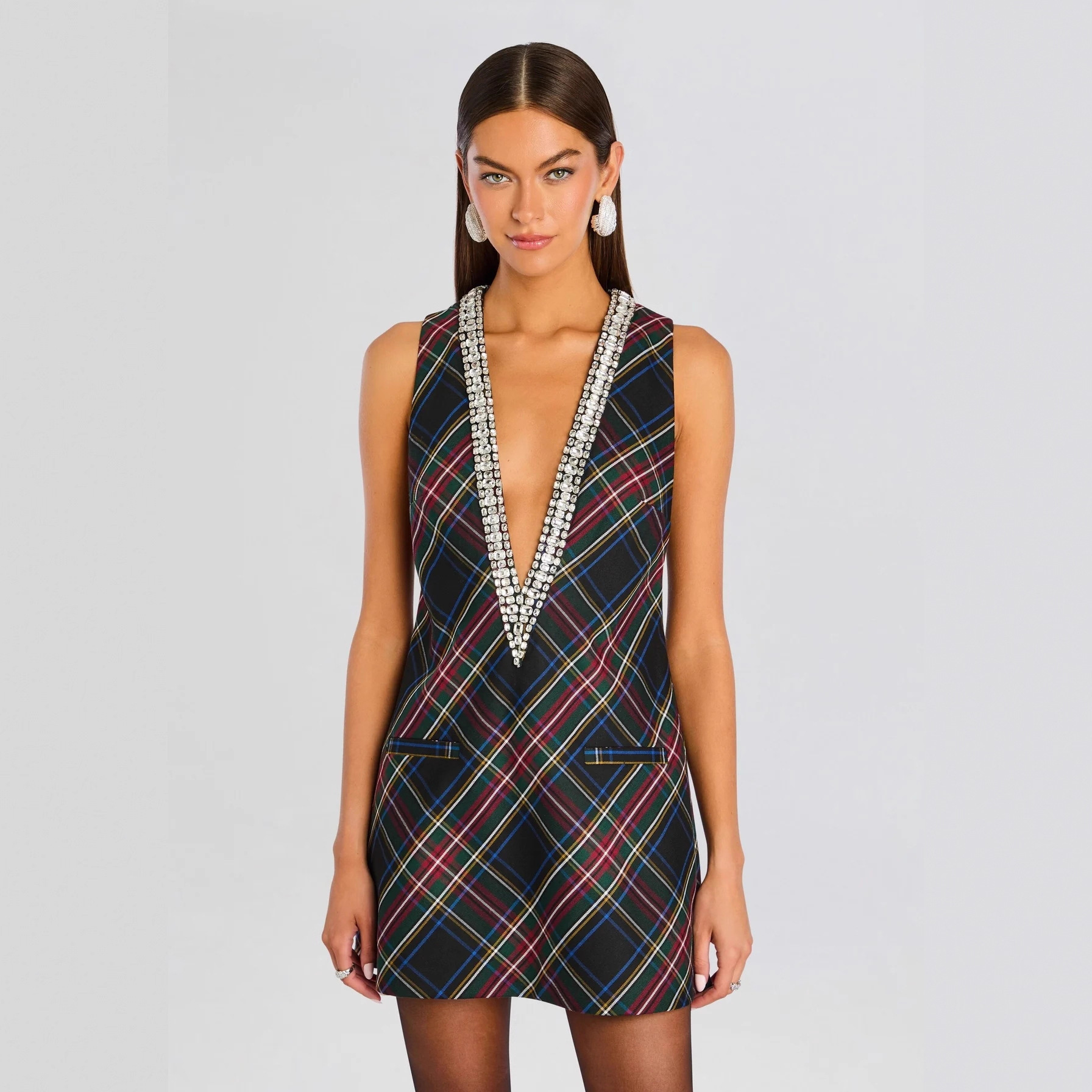 Trendy Elements: V-Neck, Plaid, Solid Color, Off-Shoulder, Patchwork, Appliqué
