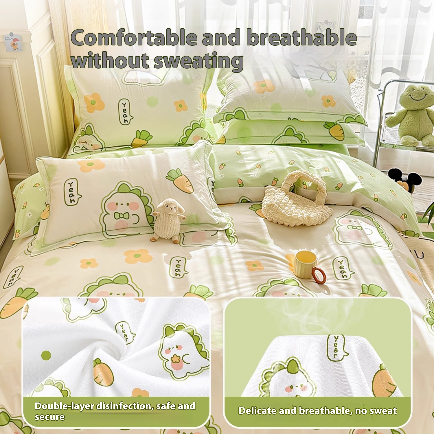Color: Dinosaur single 3 PCs set, dinosaur double-bed four-piece suit, pure white single 3 PCs set, pure white double-bed four-piece suit,