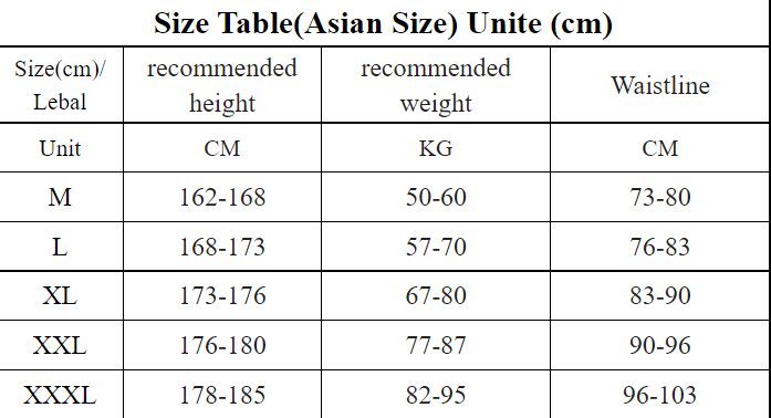 Size: 165/M 170/L 175/XL 180/2XL 185/3XL 190/4XL