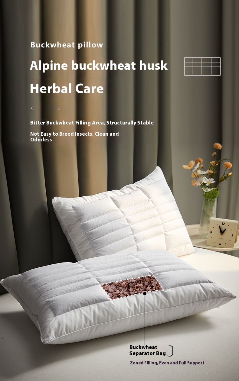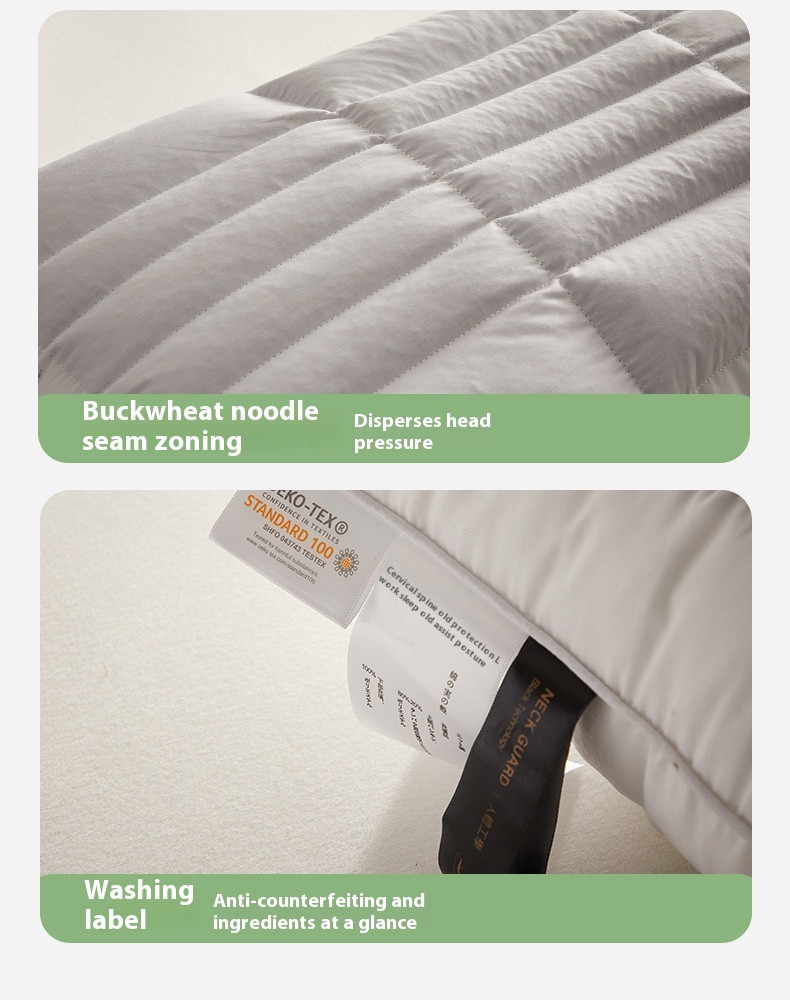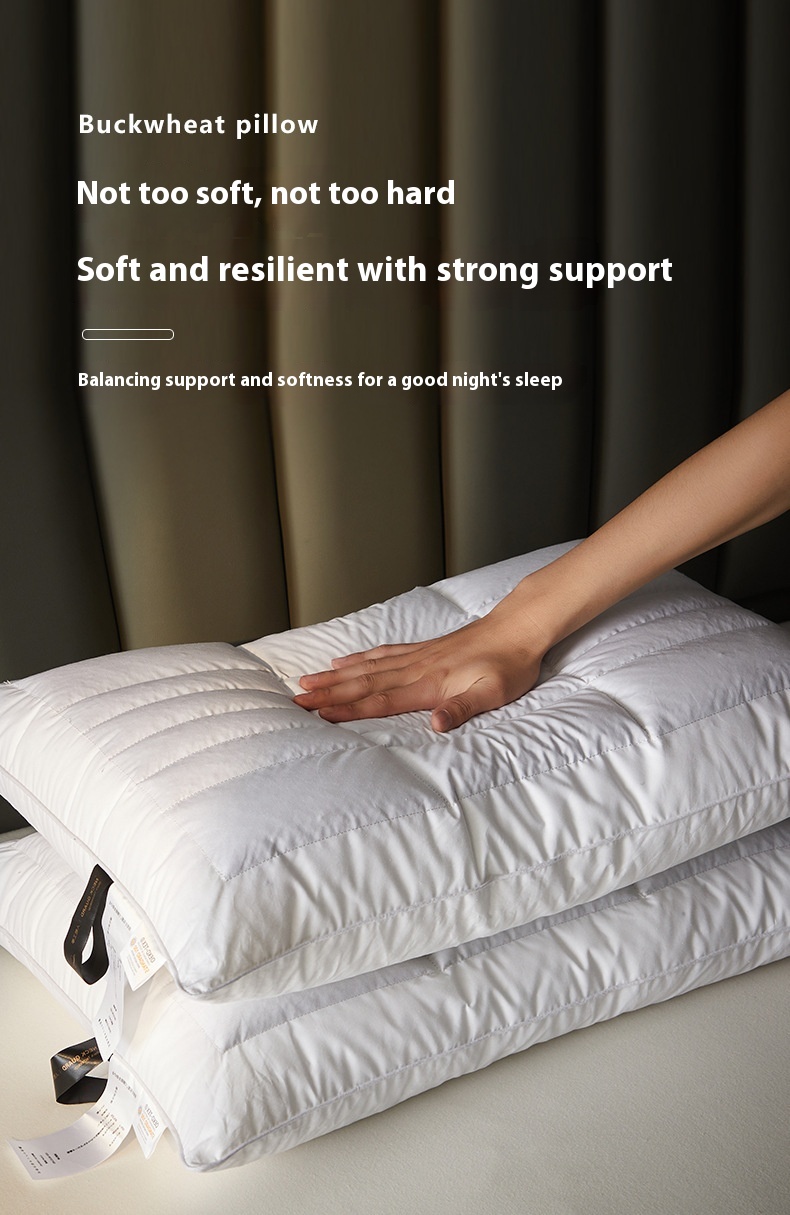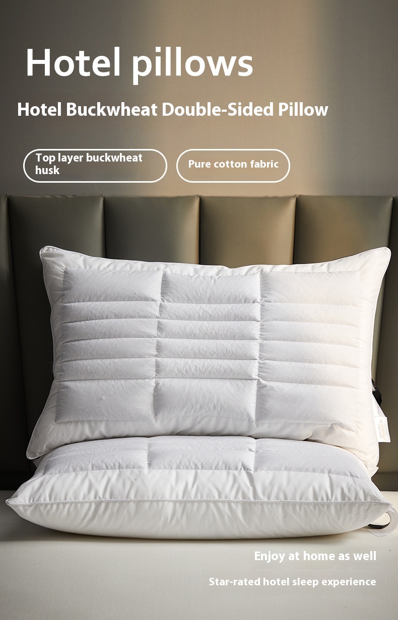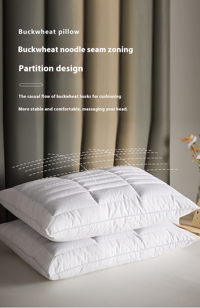 Color: hotel high pillow [cotton fabric soothing neck cooked buckwheat support fiber partition design] one pack, Hotel low loft pillow [cotton fabric soothing neck cooked buckwheat support fiber partition design] one pack