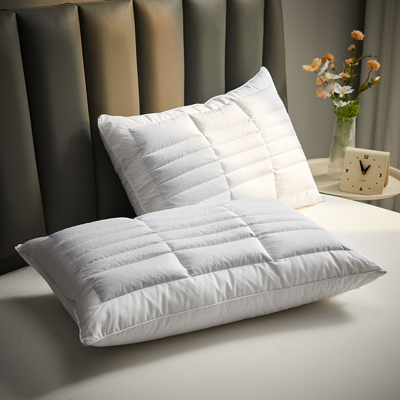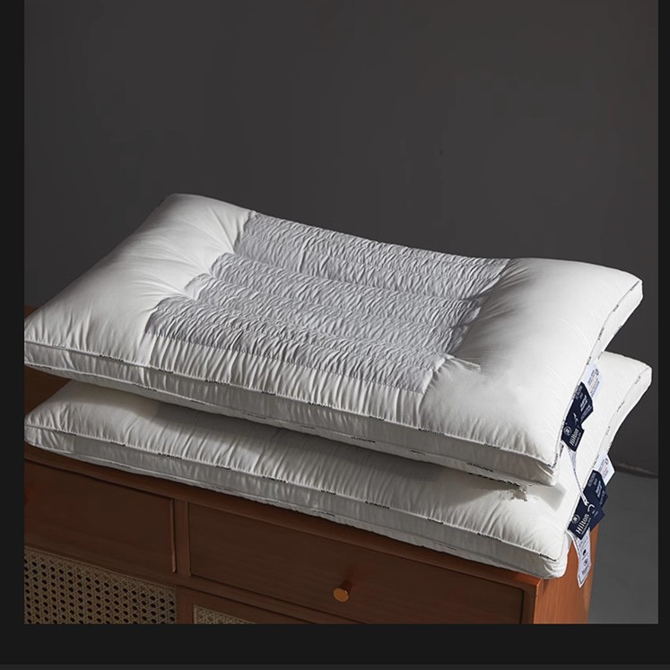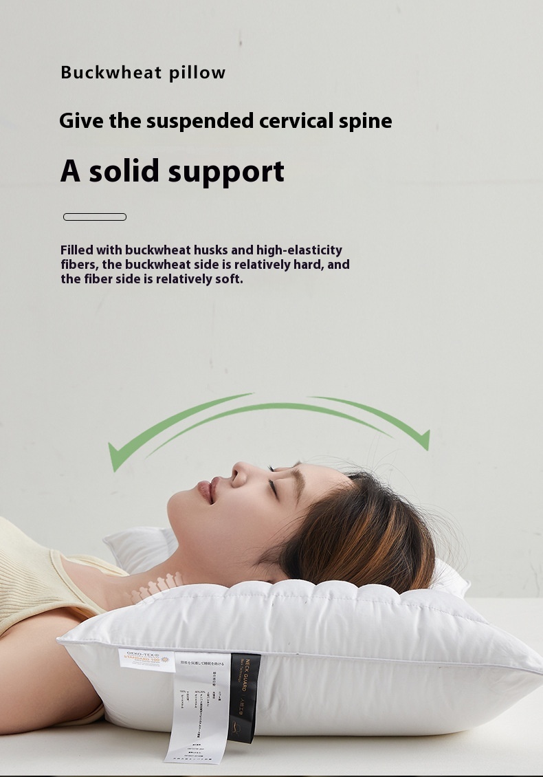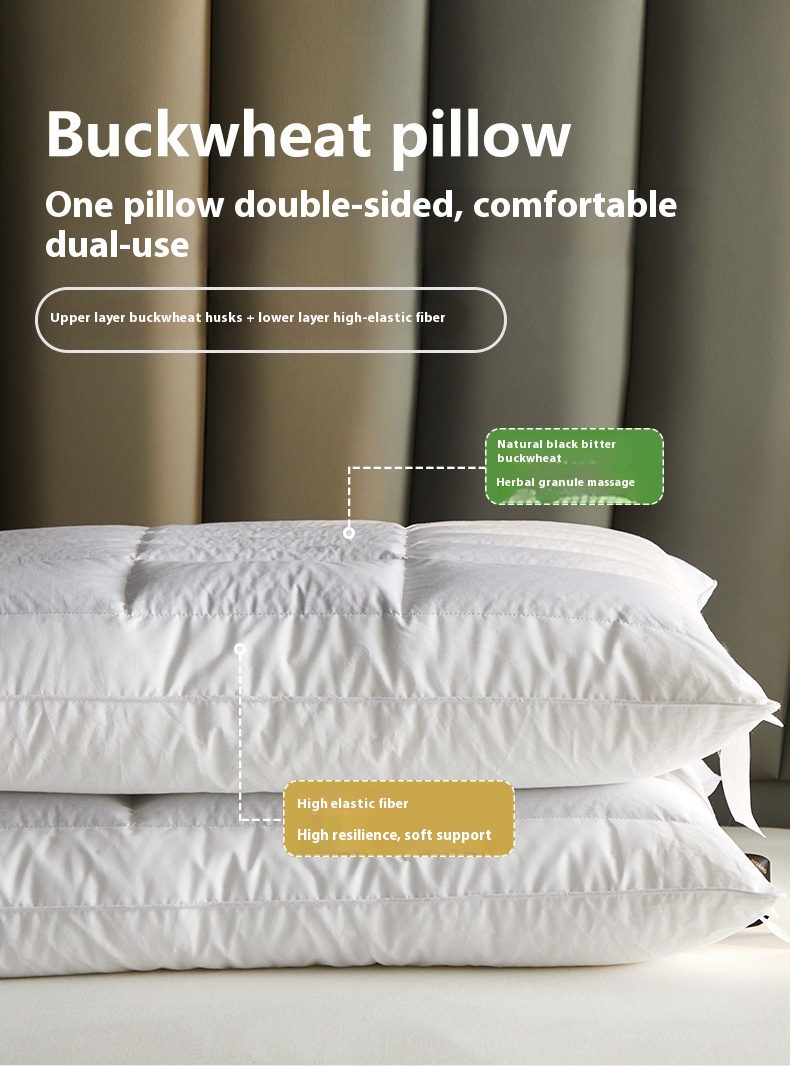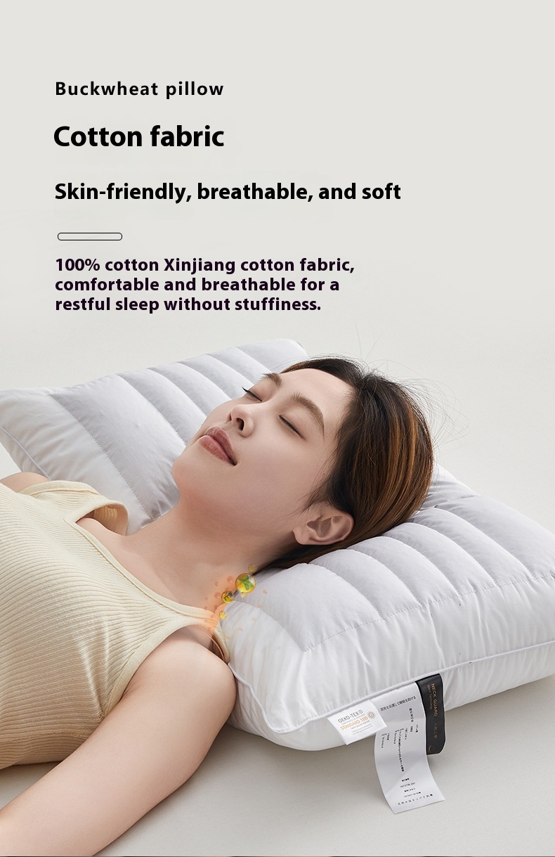 Color: hotel high pillow [cotton fabric soothing neck cooked buckwheat support fiber partition design] one pack, Hotel low loft pillow [cotton fabric soothing neck cooked buckwheat support fiber partition design] one pack