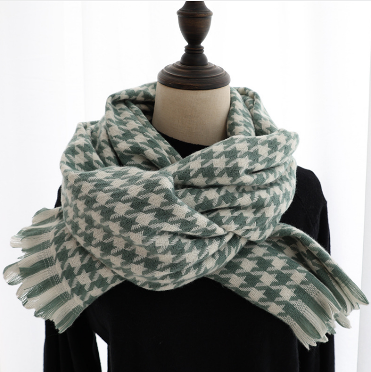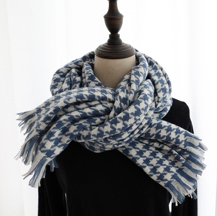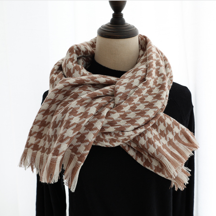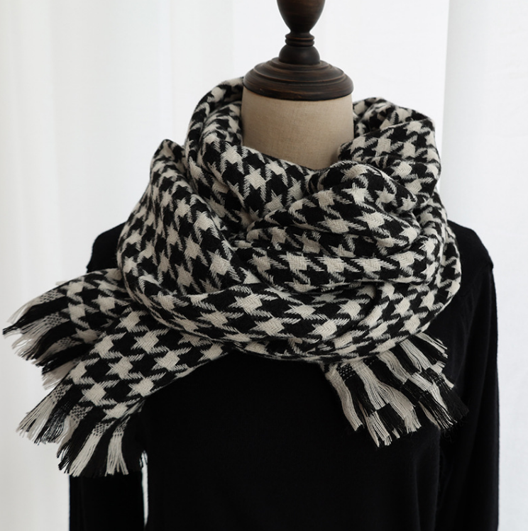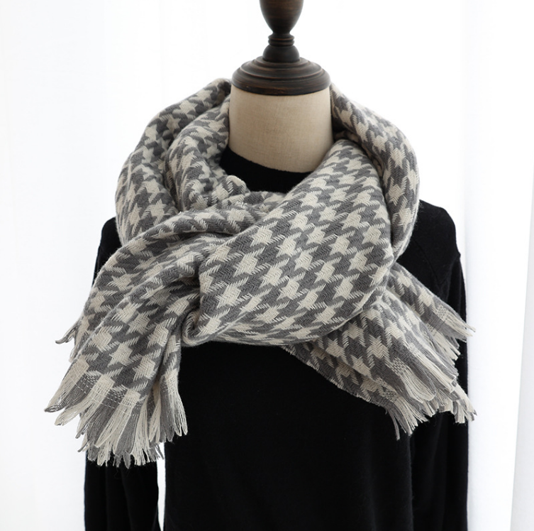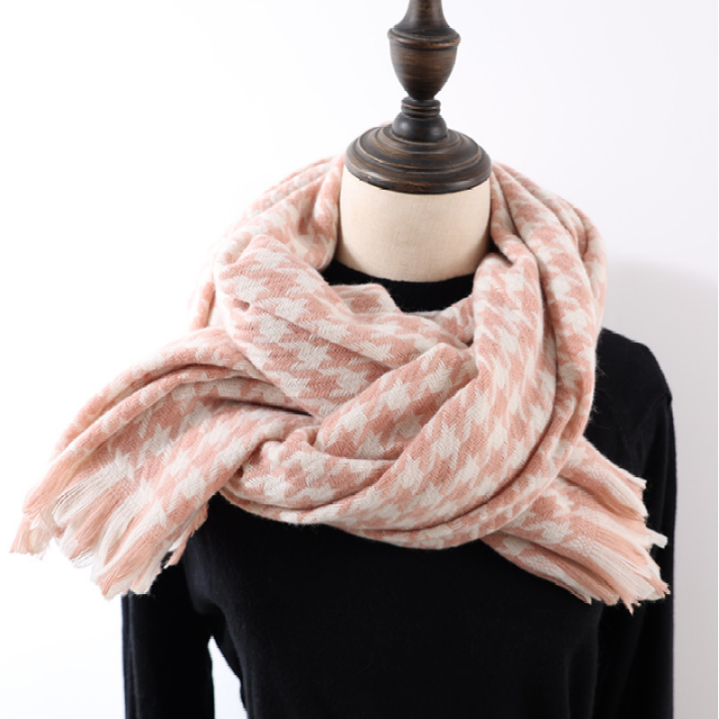 Houndstooth Cashmere Shawl Padded Warm Scarf