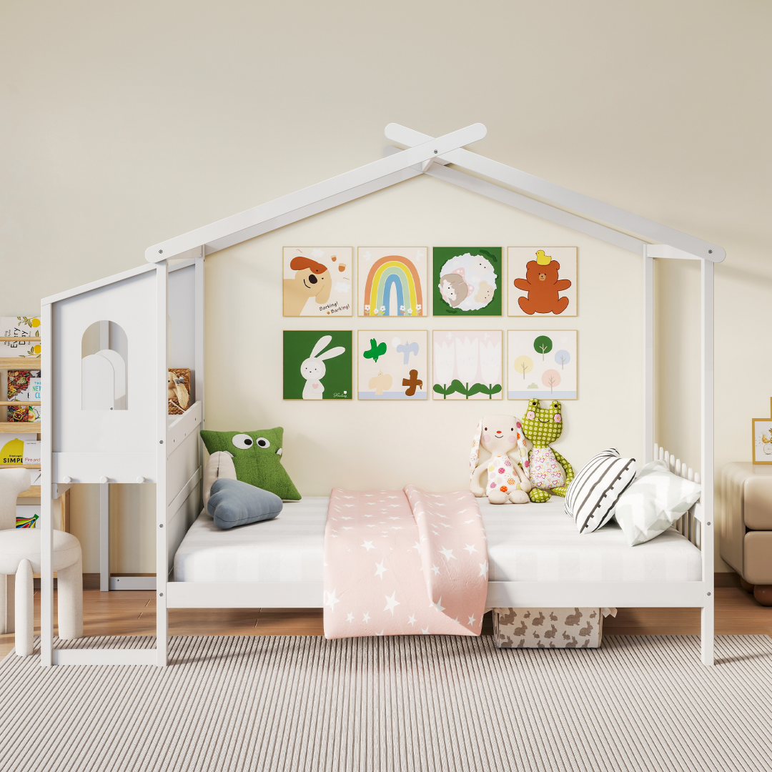 • [Inspires Imaginative Play] The classic house bed design with a roof transforms into a magical castle or secret hideout. This montessori bed for toddlers enhances a child's sense of territory and privacy, providing a personal space for them to read, think, and rest, which is vital for developing independence.