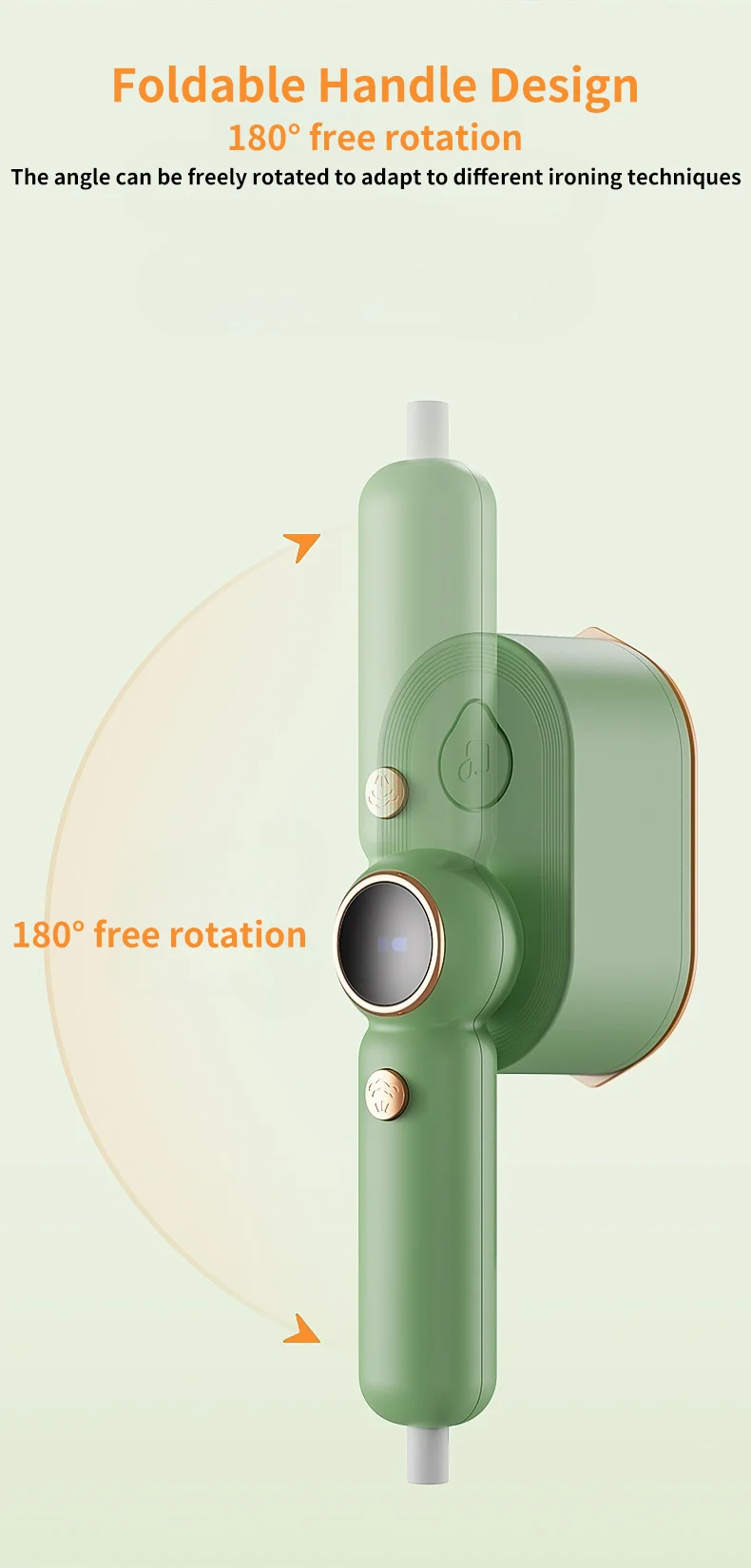 1. Foldable handle, 360° free rotation can adapt to different ironing techniques.