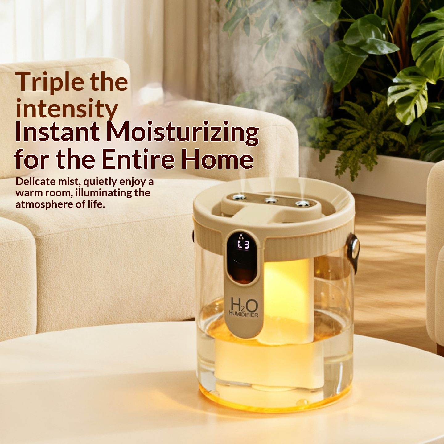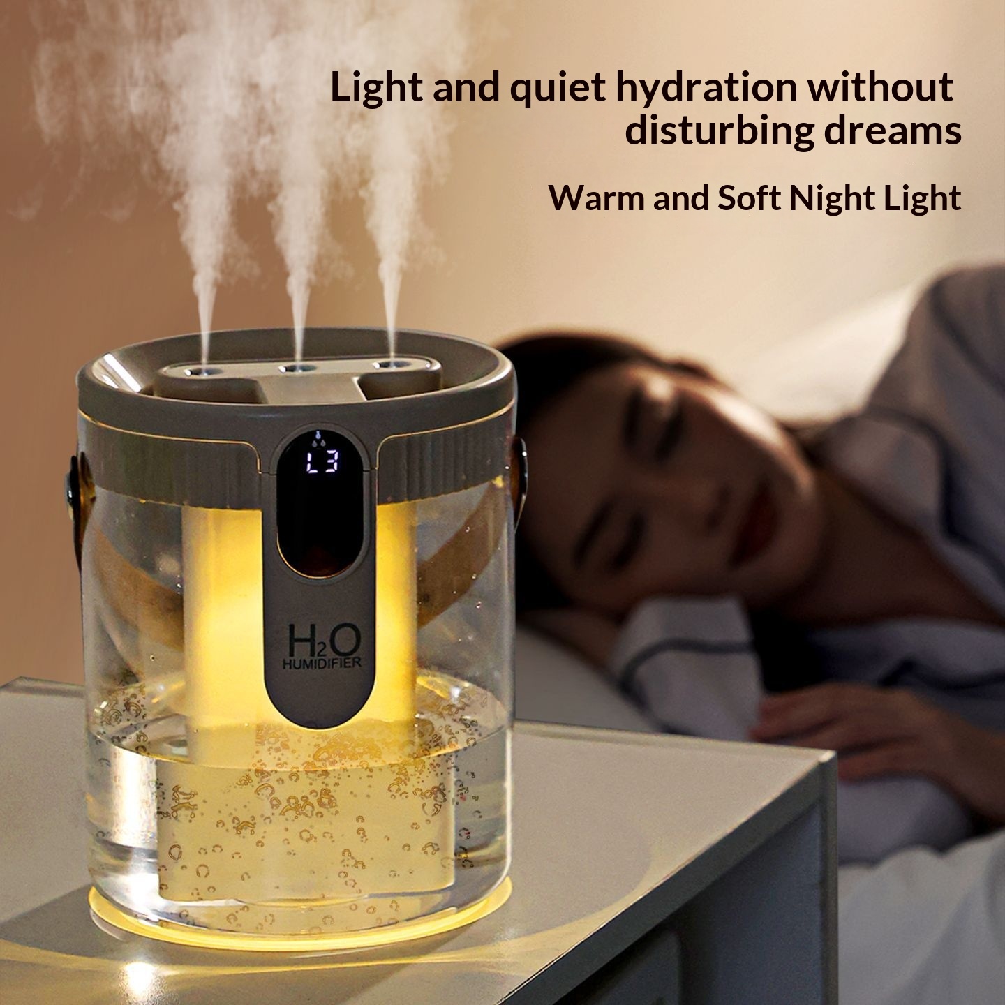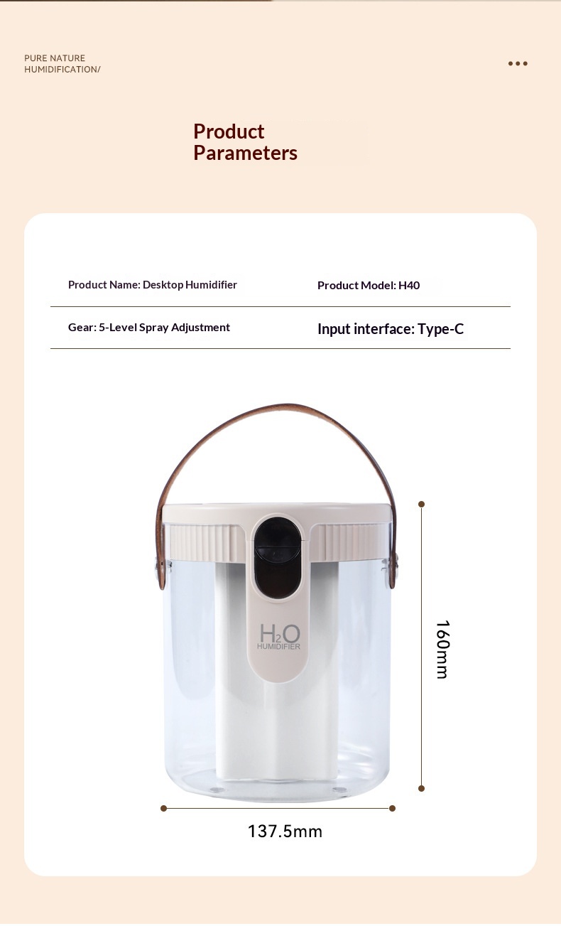 Colors: [Triple-Spray Humidifier, Purple, Rechargeable] — Quiet humidification, nano-level fine mist, portable design, ultra-long battery life, HO technology, warm ambient lighting, three-speed adjustable mist outlet; [Triple-Spray Humidifier, Gray, Rechargeable] — Quiet humidification, nano-level fine mist, portable design, ultra-long battery life, HO technology, warm ambient lighting, three-speed adjustable mist outlet; [Triple-Spray Humidifier, Beige, Rechargeable] — Quiet humidification, nano-level fine mist, portable design, ultra-long battery life, HO technology, warm ambient lighting, three-speed adjustable mist outlet.