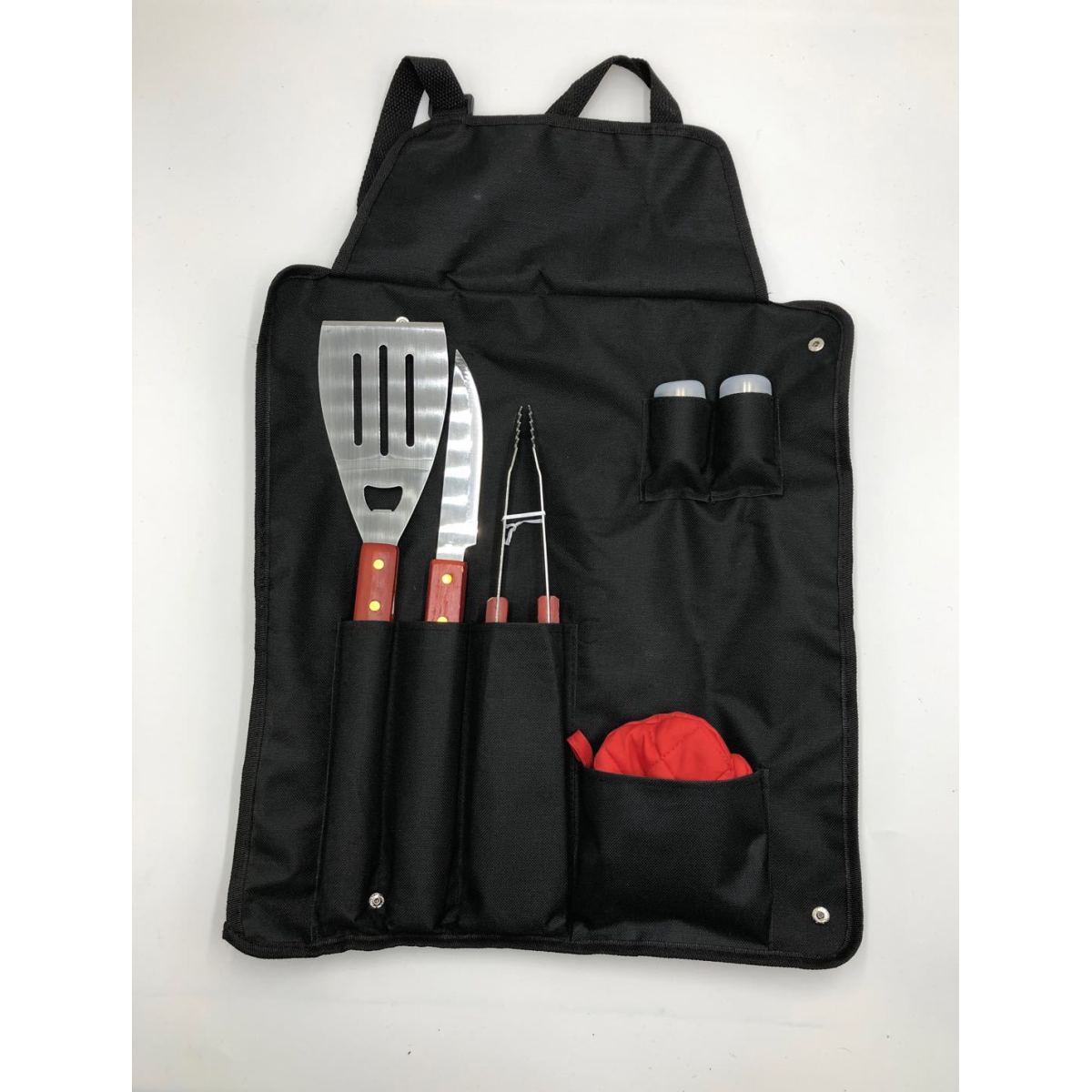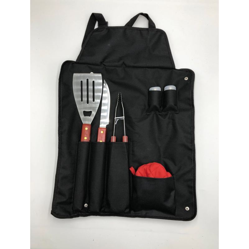 The kit includes an apron bag, oven gloves, tongs, shovel, fork and 2 bottles of seasonings, which can meet the different requirements of barbecue activities.